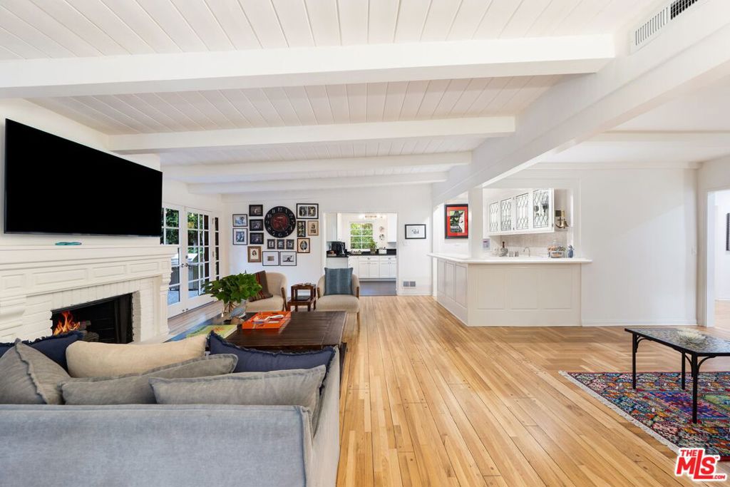 Located in the heart of Longridge Estates, this single-story completely updated traditional residence embodies timeless sophistication, complete privacy, and effortless livability. Behind secure gates, the home reveals a serene retreat surrounded by lush, mature landscaping, an entertainer’s paradise and a private sanctuary all in one. Step inside to discover wood-beamed ceilings, herringbone-patterned floors, designer lighting, French doors, and elegant fireplace mantels that showcase the home’s refined craftsmanship. The thoughtfully designed layout, a true traditional floor plan rarely found today, allows each room to maintain its own character while flowing seamlessly together, perfect for both intimate gatherings and large-scale entertaining. A formal living room anchored by a stately fireplace welcomes guests just off the entry, while the spacious family room with built-in wet bar, additional seating, and direct patio access sets the stage for effortless entertaining. The formal dining room, with seating for eight-twelve beneath a statement chandelier and bay windows, connects beautifully to a well-appointed kitchen featuring stainless steel appliances, shaker-style cabinetry, and generous storage. The primary suite offers a tranquil retreat bathed in natural light, complete with a walk-in closet and a spa-inspired bathroom boasting dual vanities and a large frameless glass shower with custom tilework. Two additional guest bedrooms and a full bath provide comfort and flexibility, while two half baths add convenience throughout. Outdoors, the property transforms into a resort-like escape with a sparkling pool and spa surrounded by manicured greenery, multiple lounging and dining areas beneath a pergola, and an expansive patio ideal for hosting under the stars. The fully gated grounds provide the ultimate sense of seclusion, while the front courtyard offers additional seating areas for quiet reflection or casual conversation.
