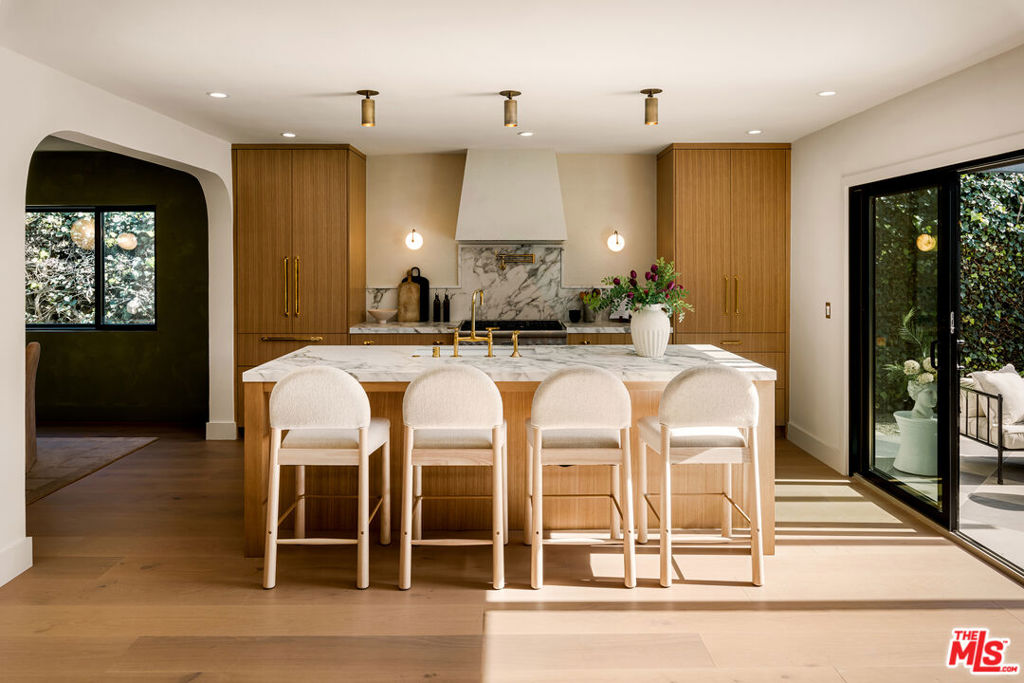 Some homes are built. Others are crafted. This Sherman Oaks home falls into the second category. Designed and built by a husband-and-wife team, it’s not a flip, it’s a personal project shaped by time, care, and a love for thoughtful, organic design. From the outside, the home feels calm and balanced. The layout and details are intentional, inviting you in at a slower pace. A limestone fountain and limestone fire-pit anchor the outdoor spaces, creating a natural place to gather. An olive tree adds a quiet, sculptural presence to the landscape. An outdoor kitchen finished with handcrafted zellige tile extends the living space outside, designed for easy hosting and everyday use. Thoughtfully layered landscaping softens the architecture and helps the home feel like a quiet retreat in the middle of the Valley. Inside, the home opens with light and ease through a high ceiling entrance that immediately sets the tone. Wide-plank oak floors run throughout, adding warmth and continuity. Accents of Roman clay and limewash add soft texture and depth, giving the home a relaxed, lived-in feel. The materials are simple and grounded limestone, oak, handcrafted tile, and alabaster and raw brass lighting fixtures, chosen to age naturally and beautifully over time. The kitchen sits at the center of the home and is designed for real life. Custom oak cabinetry and Thermador appliances make it both functional and welcoming. A large walk-in pantry adds storage and practicality, supporting everyday living and entertaining. The primary suite is quiet and calming, designed as a true retreat. The primary bathroom carries an organic, spa-like feel, finished with limestone tile and handcrafted zellige tile. The textures are soft and natural, creating a space that feels relaxed and intentional. Each additional bedroom and bathroom follows the same approach– simple, cohesive, and thoughtfully finished, keeping the home feeling consistent and calm throughout. A second-floor laundry room is thoughtfully placed for daily convenience. Outside, an outdoor bathroom designed for pool use adds ease and functionality, finished with the same care and materials found throughout the home. Located in a prime Sherman Oaks neighborhood, minutes to Sportsmen’s Lodge, the Canyons, and the 101 and 405 Freeways, this home offers easy access to daily conveniences while still feeling private and grounded. It’s more than just a house, this is a home made with intention and designed to be lived in and enjoyed for years to come.