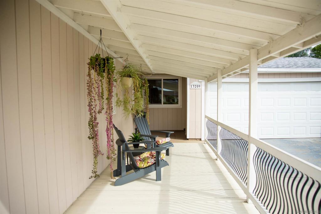 A white picket fence and covered front porch are the very essence of “home” that will captivate your first glance at 13209 Neddick Avenue. Nestled in the cozy eastern edge of Poway, the “City-in-the-Country, you’ll enjoy the mature trees that dot the neighborhood and muffled sounds of nature that make this one of North County’s most cherished and affordable destinations. (See Supplement) More pics soon! Step on up to the covered porch, home to 2 adirondack chairs & cascading hanging plants making this a delightful place to take in the charm of the neighborhood. As you enter, note the beautiful wood floors that lead throughout the home. The formal dining area is large enough for an expansive table and hutch – perfect for large gatherings. The open kitchen features a large center island with ample seating, a plethora of cabinet storage, and counter space that would bring a smile to the most finicky of sous chefs. The adjacent family room enjoys beautiful views to the back yard, boasts plantation shutters, a cozy fireplace and convenient slider to the covered patio area. The bedrooms and bathrooms are all located in the living space opposite the entertainment areas offering enhanced privacy. The Primary bedroom is complimented by a large walk-in closet and remodeled bathroom with stall shower. Both guest bathrooms are of ample size and are located just opposite the remodeled full bathroom with a tub/shower combination. The back yard area is quite private. The covered patio provides ample shade while leaving plenty of room to enjoy the morning and afternoon sunshine. The artificial turf and multiple rocked planter areas are perfect for the waterwise homeowner. 13209 Neddick is truly a destination for your next visit. Once you have the key, you’ll want to keep it for your own!