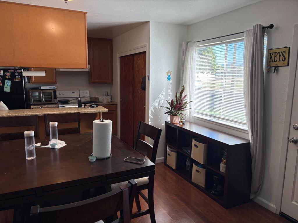 FOR RENT: 2 bedroom, 1 bath CONDO in West San Jose, near Cherry Ave. and Branham Ln. This single level, ground floor condo is approx. 810 sq ft, features solid flooring, living room, dining area, breakfast bar, kitchen with ceramic sink, refrigerator, dishwasher, electric stove/oven with hood, storage closet (pantry), central heating and AIR CONDITIONING, hall closet, new solid flooring in bedrooms, some dual-pane windows, new window blinds, new interior paint. This condo is part of a 4-unit building. There is a shared, exterior accessed laundry room with washer+dryer. There is 1-covered garage parking space, with 1-additonal driveway space and street parking. Tenants pays their own PG&E, water, and garbage. there are storage closets in the garage. Home is part of an HOA with a community pool. Landlord pays for exterior maintenance and landscaping. Across from a school. Conveniently located near Hwy-85, bus lines, retail, schools and parks. Tenant to verify all information including schools. Almaden Elementary, John Muir Middle, Pioneer High. Lease Term: 12 months; Rent: $2900/mo; Security Deposit: $2900; Utilities: tenant pays own gas, electricity, water and garbage; Tenant Requirements & Rental Criteria: I can provide. Available: Sept. 1, 2025.