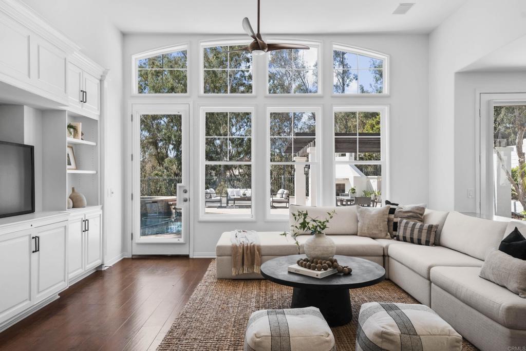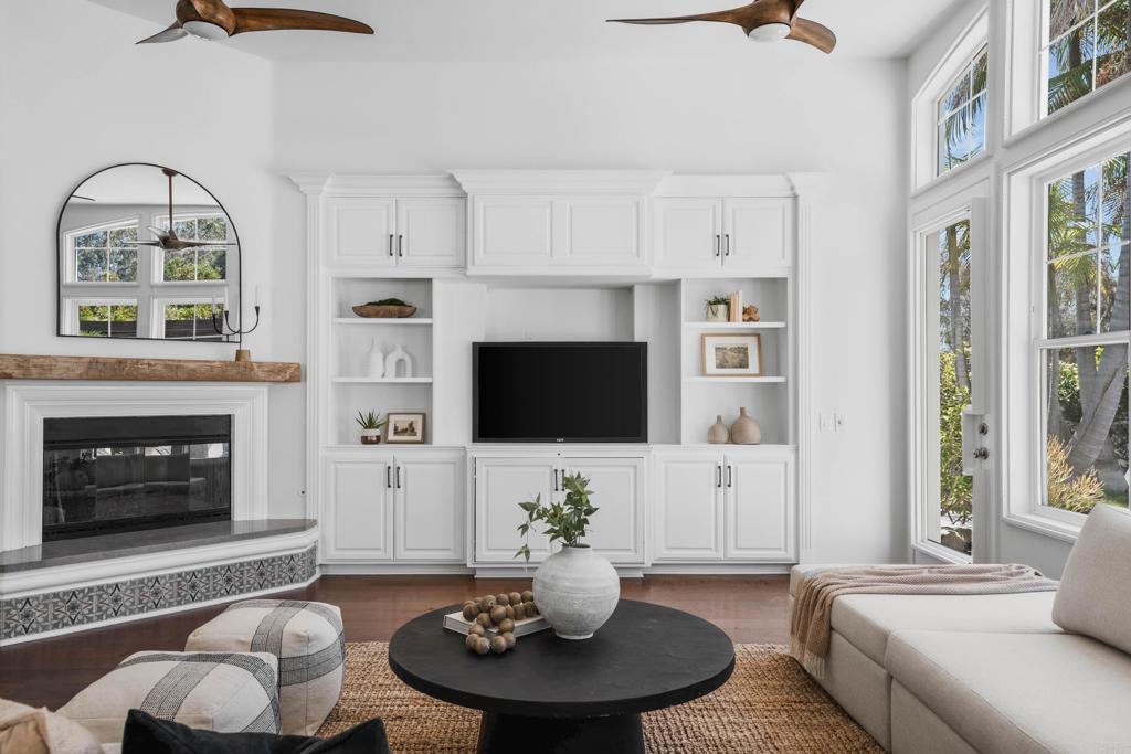 Nestled in the desirable “Mar Fiore” Aviara community, this single-story home backs to open space with lush greenery and serene views. A grand rotunda entry with soaring ceilings welcomes you into a sprawling floor plan with rich wood and beveled Versailles-patterned tile flooring, elegant arches, and freshly painted walls. The expansive living and dining room combination boasts exposed wood-beam ceilings and French doors. Work from home in the sophisticated office featuring built-ins, crown molding, and wainscoting. The gourmet kitchen offers custom cabinetry, a large center island, and stainless-steel appliances, flowing to a breakfast nook and family room with fireplace and built-in media wall. The primary suite includes a fireplace, open shelving, generous sitting area, and a luxurious spa bath with dual vanities, soaking tub, oversized shower, and custom closet system. Private, resort-style backyard features a sparkling pool and spa, fireplace, and covered dining with built-in BBQ. Additional amenities include spacious secondary bedrooms, laundry with sink, whole-house fan, A/C, solar tubes, and a three-car garage with storage. Minutes to beaches, shopping, trails, golf, and luxury resorts, this home delivers the ultimate coastal lifestyle. Award-winning schools include Aviara Oaks Elementary and Middle and Carlsbad High. Low HOA of $133 per month and Mello-Roos of just $79 per year. Buyer and buyer’s agent to verify all in MLS prior to COE.