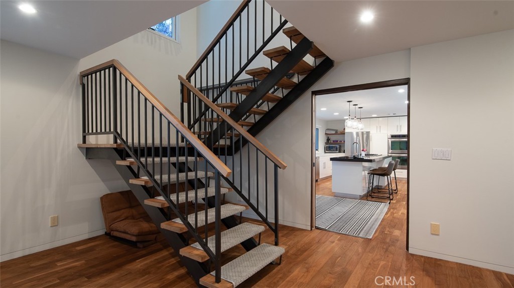 This Rustic- Modern Architectural Home, redesigned by Ryder Design features 4 bedroom, office/den, a spacious kitchen/dinning room and living room with 3.5 well appointed bathrooms. Enjoy the luxurious tranquility and beauty of the mountain views and flowering hillsides from your poolside deck. Just a short drive from all the rest of LA had to offer! Your private hideaway is light and bright, features magnificent walnut floors, state of the art appliances and stunning finishes. In addition there is a brand new dumbwaiter elevator allowing both laundry and food deliveries to easily arrive upstairs. The upstairs primary bedroom includes a balcony, with expansive view and a bathroom with double vanity, designer tile, and an oversize tube. outdoors can double as a private nature retreat and a true entertainment’s venue with sparkling pool an spa, multiple spaces for sunbathing, lounging and dining, plus fire pit, playhouse and more. This special home is a bird watcher’s paradise and a true gem.