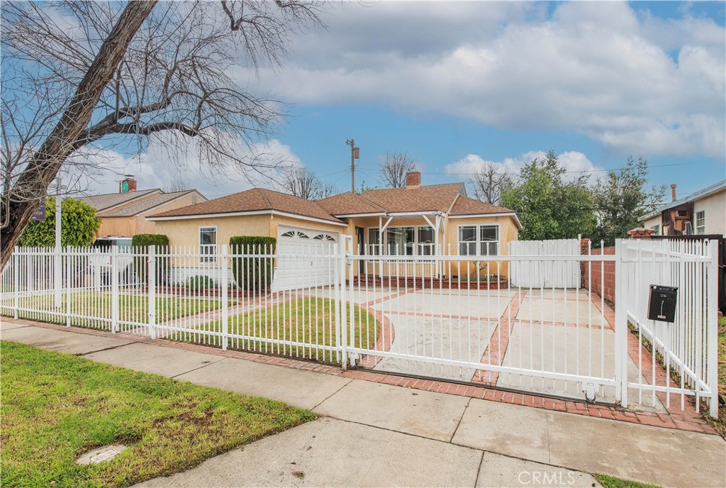 Set on a peaceful loop-style cul-de-sac, this inviting single-family home delivers 1,772 sq. ft. of thoughtfully designed living space on a gated 6,000 sq. ft. lot. Inside, the bright and open layout features luxury vinyl flooring throughout, a sleek modern fireplace, and four well-sized bedrooms with two full bathrooms, including a hallway bath with both a soaking tub and separate shower. The permitted fourth bedroom at the rear offers exceptional flexibility ideal as a second living area, media room, home office, or game room. Smart home upgrades, including wireless cameras, enhance everyday convenience. Step outside to a private backyard oasis with mature Orange and Meyer Lemon trees, perfect for entertaining or relaxing mornings at home. A gated entrance, extended driveway with RV parking, and an attached two-car garage with direct access add both functionality and ease. Conveniently located near local markets, Canterbury Avenue Elementary & Gifted Magnet, and quick access to the 5 and 170 freeways, this Valley gem blends comfort, versatility, and location seamlessly.