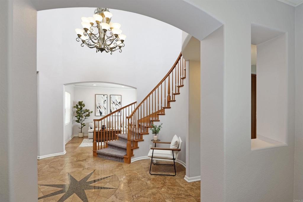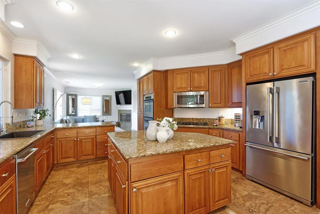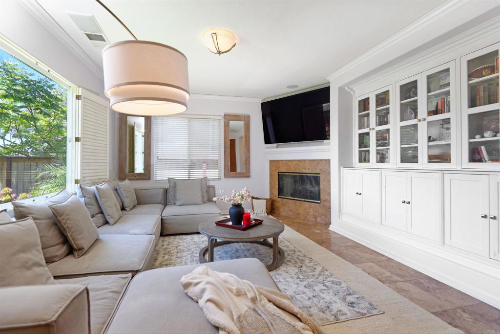 Adorned with Mediterranean elegance, this lovingly maintained home in the highly sought-after Torrey Glenn neighborhood is ideal for both easy living and memorable entertaining. Exceptional features include a spacious kitchen adjacent to the inviting family room with fireplace and custom built-in cabinetry, a formal dining room with gorgeous wood floors and fireplace, and a versatile main-level bedroom. The impressive primary suite offers a private sitting room, a generous balcony with serene sunset and hot air balloon views, and a spacious bathroom and closet. Beyond the main living areas, this home is completed by three additional upstairs bedrooms, separate living room, a well-appointed laundry room, plus fully owned solar, 3-car garage, and fresh paint throughout. Complimenting the appealing interior, the private backyard boasts a covered patio, built-in barbeque with fire feature, and an expansive lawn. This prime location in Torrey Highlands offers access to top-tier schools and amenities, ensuring an unparalleled lifestyle.