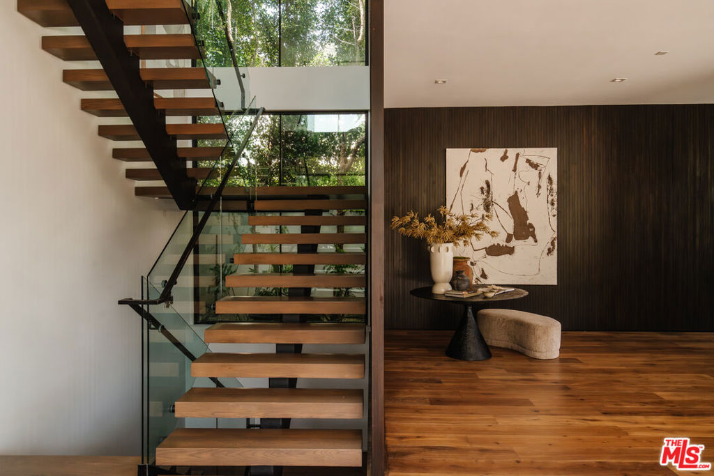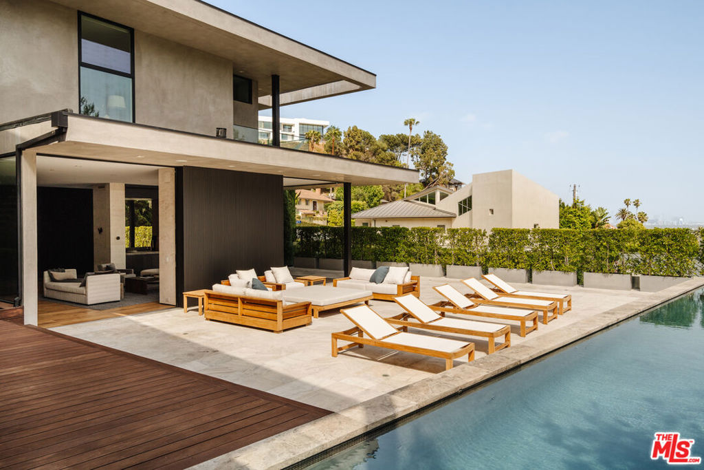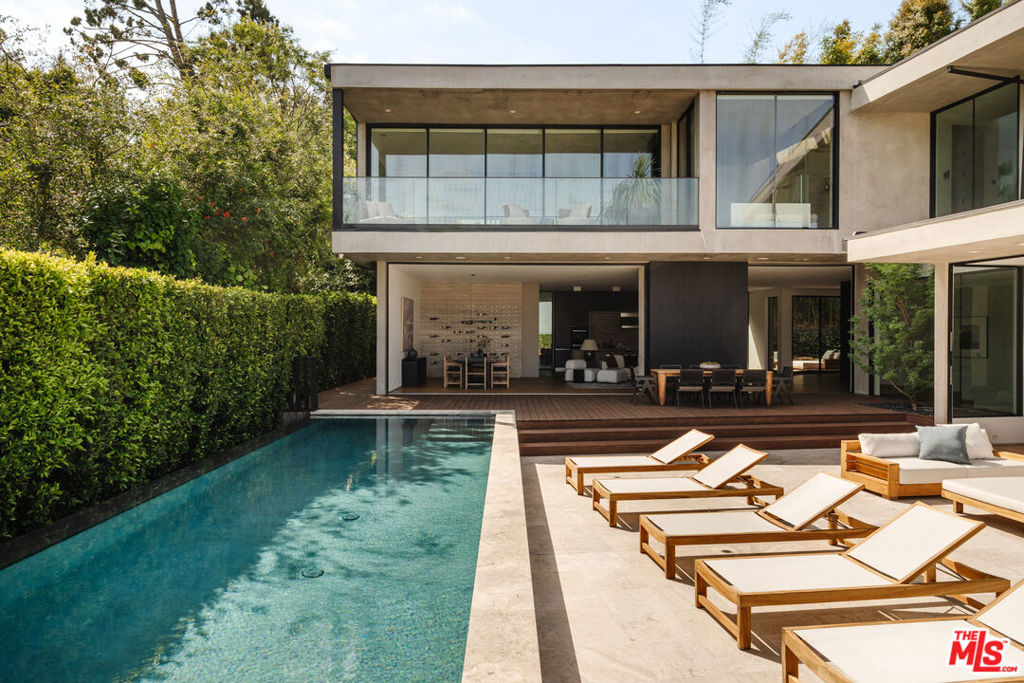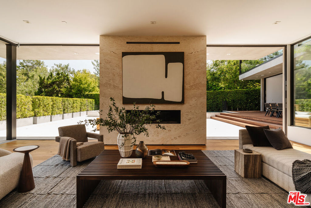 A true architectural masterpiece by HEH in collaboration with BO.SHI Architects, this private, design-forward residence offers the perfect balance of warmth, minimalism, and modern luxury just moments from the iconic Sunset Strip.Behind mature hedges and a gated motor court, enter through a dramatic 10-foot glass door into a stunning living and bar area featuring a floor-to-ceiling stone fireplace and expansive Fleetwood sliding doors. Designed for seamless indoor-outdoor living, the home features three striking stone fireplaces, including in the Primary suite, and a thoughtfully curated interior that exudes sophistication. The open-concept kitchen is a true showstopper, outfitted with Miele appliances and ideal for large-scale entertaining. The adjacent dining and family rooms flow effortlessly to the outdoor lounge with fireplace, swimmer’s pool, and spa. A second outdoor retreat, lush and serene, sits just off the kitchenyour own private garden escape in the city. Upstairs, the luxurious Primary suite includes dual oversized walk-in closets, a spa-inspired bath wrapped in stone and marble, and panoramic views of Downtown LA. Two additional ensuite guest bedrooms, a sitting room, office, and laundry room complete the upper level. Additional highlights include a full-size home theater and bar, a lower-level guest suite, elevator access to all three levels, 5-car garage, and expansive motor court. Just a short distance to Sunset Plaza’s top restaurants, shops, and nightlife–this is California living at its finest.