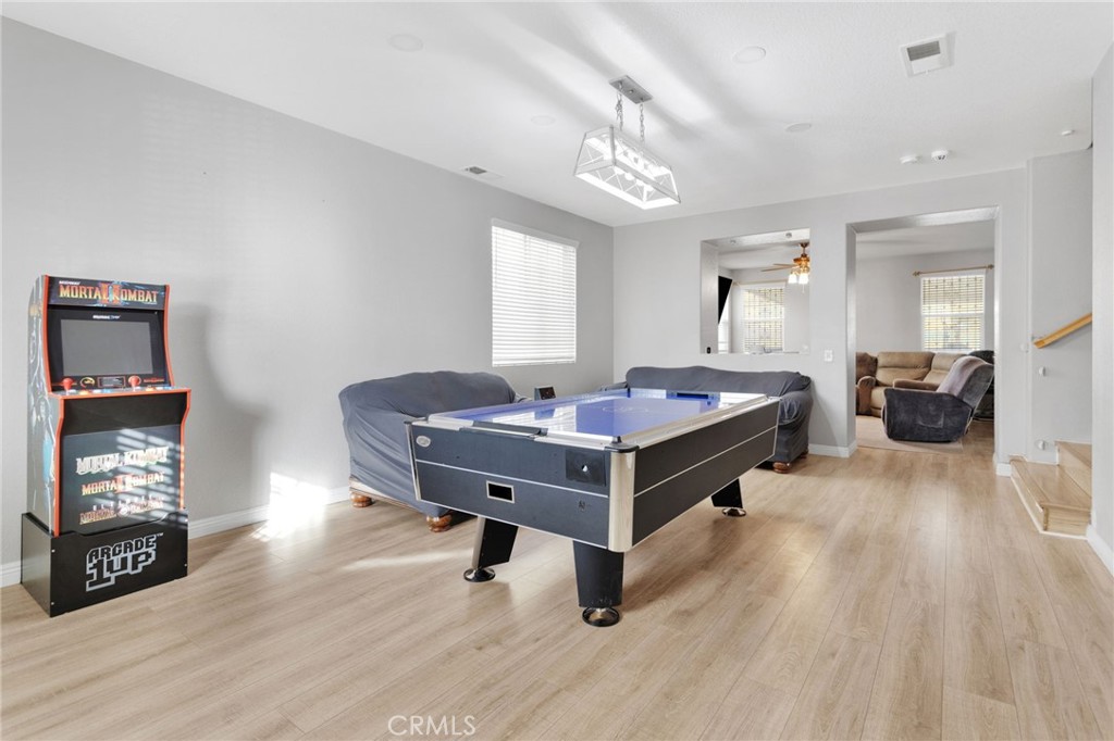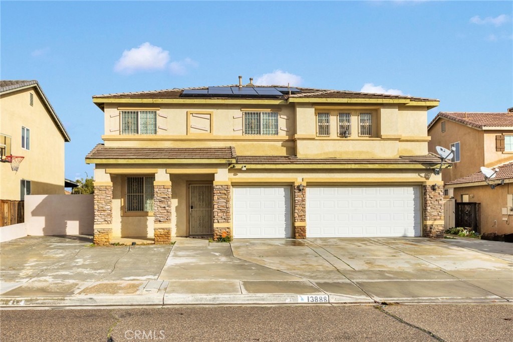 Beautifully Updated Pool & Spa Home with Two Primary Suites! This spacious and well-maintained home offers a wonderful blend of comfort, functionality, and inviting living spaces. Featuring separate formal living and family rooms, the layout is ideal for both everyday living and entertaining. The family room includes a built-in bar and opens to the recently remodeled kitchen, creating a great flow for gatherings. The updated kitchen features new quartz countertops, new cabinetry, a stylish backsplash, a center island, stainless steel appliances, recessed lighting, and a large pantry. A downstairs bedroom and full bathroom provide a convenient space for guests or extended family, along with a separate laundry room. Upstairs you’ll find four additional bedrooms, including two primary suites. The first primary suite offers a spacious bedroom, an updated bathroom, and a large walk-in closet that was originally a sixth bedroom and could be converted back if desired. Bedrooms three and four are generously sized and share a newly remodeled Jack-and-Jill bathroom with double sinks and a tiled walk-in shower. The second primary suite is oversized and includes a private balcony, a large ensuite bathroom with an extended shower, dual sinks, and a walk-in closet. The front yard offers extended concrete for additional parking. The backyard is designed for easy outdoor enjoyment with stamped concrete throughout, a brick wall, an extended covered patio, and a bar area. Enjoy the saltwater pool with waterslide and jacuzzi—perfect for relaxing or entertaining. Additional features include a leased solar system with average utility costs of approximately $151 per month. This home offers generous space, thoughtful updates, and great indoor-outdoor living—ready to be enjoyed by its next owners.