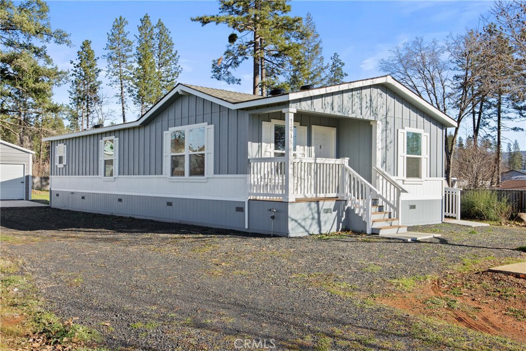 Located near the end of a quiet road on a spacious and flat lot, this inviting home is move-in ready. Upon entry you are welcomed into the light and bright, open living area featuring a tray ceiling and many windows allowing for tons of natural light. The functional kitchen includes stainless steel appliances, a gas range, as well as ample cabinet space with the sink and dishwasher on the island. Off of the kitchen is the separate dining area. Down the hall is the guest bathroom, 2 bedrooms, and storage closet. The guest bathroom offers a tub/shower combo and large vanity with plenty of counter space. In the laundry room there is a utility sink and tons of storage/cabinet space. At the end of the hall is the master suite featuring a walk-in closet and attached bathroom with a step-in shower and an additional storage closet. Additional features include recessed lighting, blinds throughout, composite decking material, a detached shop with 2 roll up doors and a man door, and tons of flat/usable yard space.