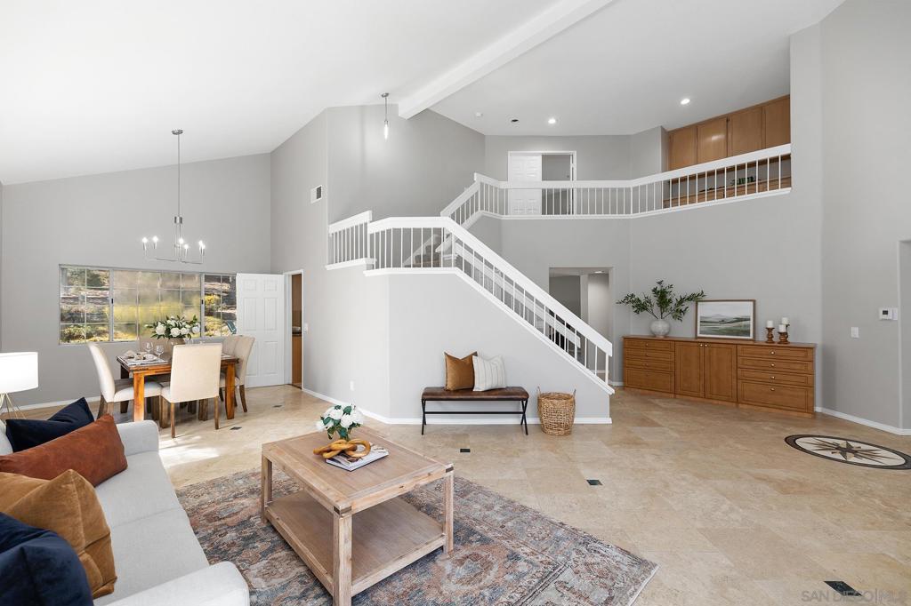 Welcome to your dream home in the heart of Poway! This upgraded 4BR/3BA, 3-car garage home offers 2,736 sq. ft. of living space with a pool, RV parking, and owned solar. From the moment you step inside, you’ll be greeted by bright, open interiors, attractive finishes, and a layout that blends coziness and sophistication. The downstairs main level features travertine tile, a full bedroom and bath with Murphy bed and built-in closet, and separate living, dining, and family rooms. The remodeled kitchen includes new cabinets, granite counters, JennAir and KitchenAid stainless steel appliances, farmhouse basin sink, pantry cabinet, spice rack, and functional storage. The whole house water filter ensures fresh water throughout. Upstairs, the primary suite boasts a walk-in closet and a fully remodeled spa-like bath with new cabinets, granite counters, retiled surround, step-in shower with bench and dual shower heads and pocket door. Outside, enjoy the sparkling pool, lemon tree, newer stucco, vinyl fencing, fenced and irrigated yard, new patio pergolla plus side RV parking. Located near top-rated Poway schools, shopping, and dining, this move-in ready home is a true gem providing you with plenty of options for entertaining and everyday living.