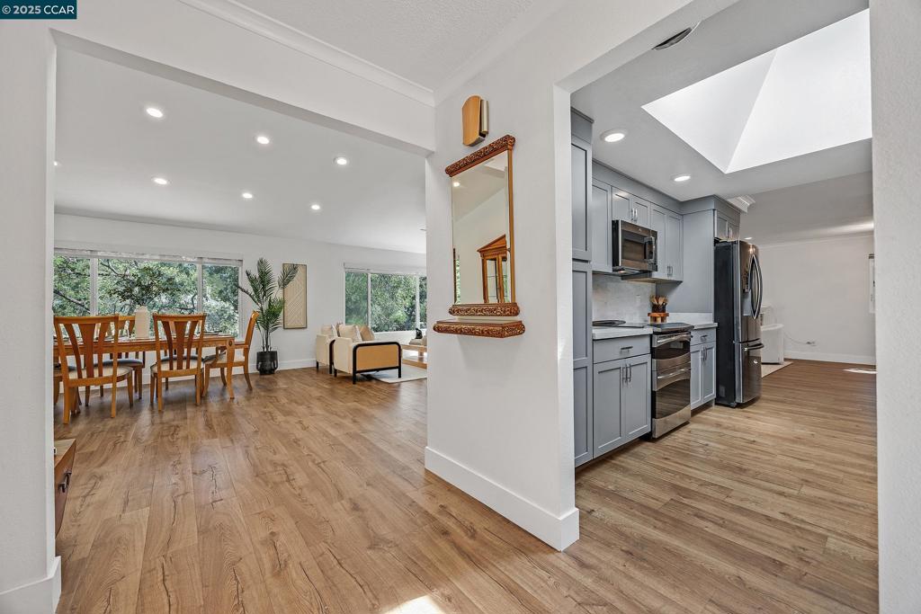Tucked away on a quiet cul-de-sac and framed by a lush backdrop of mature trees, this 3-bed, 2.5-bath, appx. 2079 square foot two-story single-family home is a private retreat just minutes from the Contra Costa Country Club Golf Course. Step outside to not one, but two Trex decks, which are perfect for morning coffee surrounded by nature or evenings unwinding in your private jacuzzi under the stars. On the main level, natural light pours through the skylights and expansive picture windows, framing mature oaks and a seasonal creek. The heart of the home—a beautifully updated kitchen- offers the ideal blend of modern style and everyday functionality, ready to inspire your inner chef. Downstairs, you will love relaxing in the ample-sized primary bedroom retreat, which offers access to the back deck, a spa-like bath, a large walk-in closet and a convenient utility/laundry room with plenty of space for storage. Live near Hidden Lakes Park, Paso Nogal Dog Park, Diablo Valley College, shopping, excellent public schools, and freeways. Whether you’re entertaining on the deck or enjoying a quiet moment with nature, this home offers a lifestyle that’s both connected and serene.
