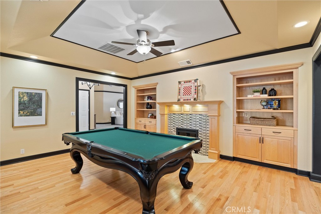 Where do I begin?! This property has it all!! *Pool with three waterfalls and a slide. *Hot Tub. *Raised Garden Beds. *Outdoor BBQ kitchen. *RV parking. *Fenced-in Dog Run or Chicken Coop. *Basketball hoop. *A 2-story barn and a second, smaller barn. *No climb fences around the backyard. That’s a good start! Now come in the front door and you will find a versatile space: a game room complete with a fireplace and pool table, which could also serve as a formal living room. A formal dining room features a built-in china hutch and two toe-kick drawers to easily store your large platters. The expansive great room seamlessly blends the kitchen and family room, creating an ideal space for entertaining and daily living. The meticulously designed kitchen boasts a built-in eating nook and a sit-up bar for casual meals. Culinary enthusiasts will appreciate the double ovens and a dedicated prep sink, and the under-cabinet electric outlets & lighting provide functionality and ambiance. Three Shallow toe-kick drawers are perfect for those large serving platters. Escape to your private primary suite, offering direct access to the backyard, sparkling pool, and relaxing hot tub. Cozy up by the fireplace wtih a book, or indulge in your personal spa retreat, complete with a pipeless Sanijet tub. The en-suite bathroom features a dual sink vanity, a spacious step-in shower with dual shower heads, and a private water closet. Experience ultimate comfort with heated floors throughout the bathroom and spa room. Ample storage is provided by three closets. On this side of the home, you also have an additional bedroom,an office and a hall bathroom featuring a pipeless Sanijet bathtub and beautiful built-in cabinetry. The split floor plan provides privacy for your guests. They’ll enjoy a spacious suite with private access to the backyard, pool, and hot tub. The en-suite bath includes a long vanity with built-in cabinets, a step-in shower, and a private water closet. The fabulous laundry room features a stainless steel counter and sink, a bubbles backsplash, and a built-in refrigerator/freezer. Enjoy individualized climate control with a whole-house fan in the hallway, and Quiet Cool fans in the primary suite, craft room/office/bedroom, and the additional single bedroom. As the final touch, there are solar tubes throughout to ensure your home is filled with natural light. Be sure to ask for Supplements! And schedule your showing!