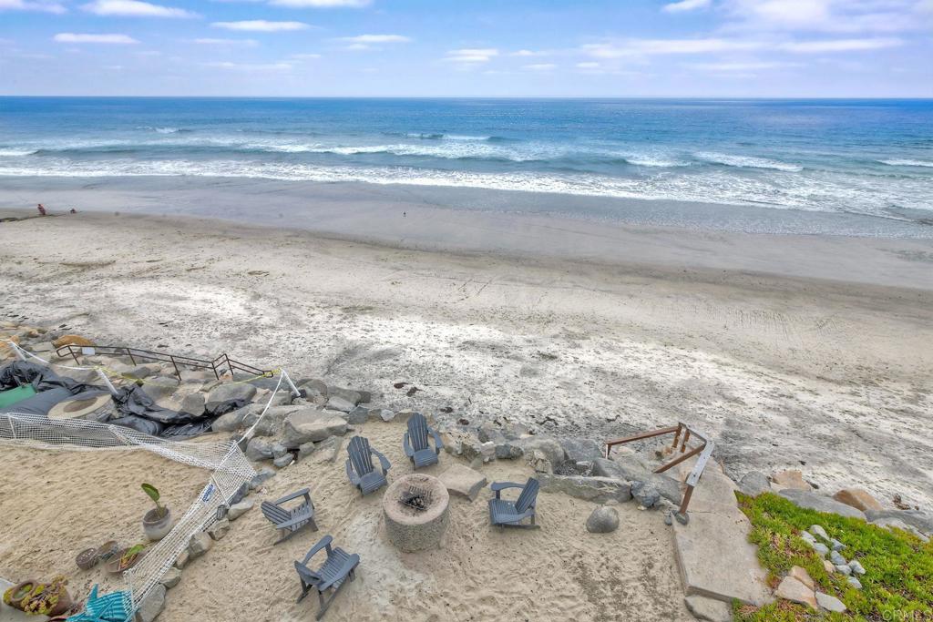 EXCLUSIVE BEACHFRONT HOME IN OCEANSIDE w/ STR OPTION SELLER FINANCING AVAILABLE W/30% DOWN, 4% INTEREST ONLY Why dream of ocean views when you can live directly on the sand? This rare oceanfront single-family home in San Diego County offers an unmatched coastal lifestyle. Sellers are open to carrying a first loan, making this 8-bedroom (plus optional office/9th bedroom), 4.5-bath gem a unique opportunity. Main Level: Features a spacious galley kitchen, dining area, great room, 2 bathrooms, laundry room, bedroom, and ocean-view deck. Upper Level: Includes 4 bedrooms, a laundry closet, an office, and a stunning primary suite with a fireplace, private deck, and large windows/sliders framing spectacular Pacific Ocean vistas. Beach Level: Offers 3 bedrooms, a full bath, a beach bar with sink and wine fridge, secondary efficiency kitchen, a fireplace, and a vast entertainment area. Step out to a deck with built-in seating, a surf shower, a fire pit, and your own private beach with exclusive ocean-access stairs. Lock out feature between the first and second floors, creates a rental income opportunity. Bright and airy with abundant storage and 400 sq.ft. of oceanfront deck space. Includes a single-car garage, carport, and off-street parking. Furniture negotiable. No HOA or special assessments. Conveniently near shopping and dining. Seize this extraordinary chance to own a private beach paradise!