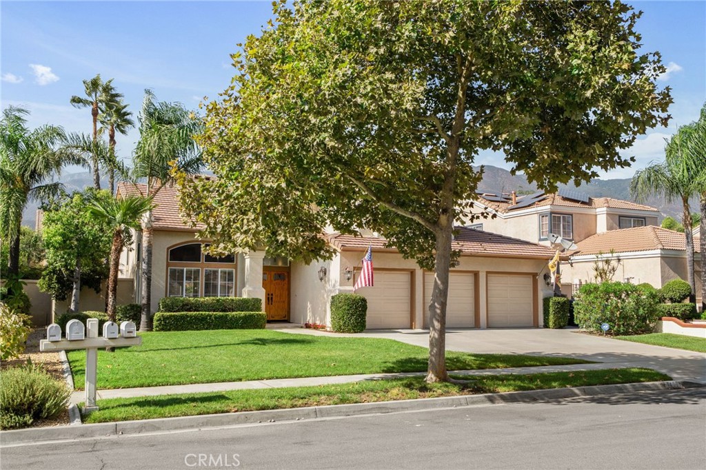 This meticulously maintained home checks all the boxes! It is located directly across from the greenbelt in the coveted Brentwood neighborhood of Rancho Cucamonga. When you enter the home, you are greeted by soaring ceilings and tons of natural light in your formal living and dining areas. Wood-look tile flows through the downstairs, making clean-up a breeze. The kitchen is fully equipped with a new stainless-steel fridge, dishwasher and double ovens, as well as granite counters, and is open to the dining nook and family room with cozy fireplace. There is a full bedroom downstairs that is built out with solid wood office cabinetry as well as a Murphy bed, and a full bathroom, creating a wonderfully functional guest space. Taking the elegantly appointed wood and wrought iron staircase leads to the second level landing with built-in wood storage. The spacious primary bedroom with vaulted ceilings and his and her closets has a large ensuite bathroom with tons of storage, dual vanities, a soaker tub and shower. Two more bedrooms and a full bath complete the second level. Outside leads to the perfect space for California outdoor living! The sparkling pool was recently re-plastered and the BBQ in the entertainment island is brand new. The built-in fire pit with seating is sure to be a favorite hangout spot. There are multiple mature fruit trees including pomegranate, lemon, lime, fig, peach and almond. This beautiful home is move-in ready and located within top-rated Etiwanda School District. It is close to nearby parks and easy freeway access with low taxes and no HOA. Bring your pickiest buyers!