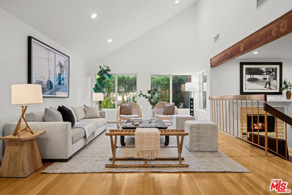 Welcome to an elevated way of life in Pacific Palisades, where coastal beauty meets the effortless sophistication of the Santa Ynez Mountain landscape. Set on a quiet cul-de-sac in the sought-after Palisades Highlands, this impeccably maintained two-level residence offers a rare opportunity to enjoy refined California living with complete peace of mind. Thoughtfully blending timeless comfort and modern elegance, the home spans approximately 2,885 square feet with four beautifully appointed bedrooms and three baths. Upon entry, soaring ceilings and abundant natural light define the expansive living spaces. The formal living room impresses with vaulted ceilings, a gas fireplace, and a wet bar — creating a welcoming setting for both intimate evenings and elegant entertaining. An adjacent dining room provides the perfect backdrop for memorable gatherings. Further in, a separate family room flows seamlessly to the backyard through sliding glass doors, offering effortless indoor-outdoor living. An artfully curated wood staircase anchors the home’s architectural presence, while special moments throughout — including the bar area and fireplace — add warmth and character. At the heart of the home, the remodeled kitchen showcases custom wood cabinetry, stone countertops, premium appliances, a pantry, and a charming garden window. A casual breakfast area opens to a pergola-covered flagstone patio with a built-in BBQ, ideal for relaxed entertaining and alfresco dining. Upstairs, all four bedrooms are thoughtfully arranged to create a private, serene living experience. The primary suite is a true sanctuary, featuring beamed vaulted ceilings, dramatic picture windows framing the Santa Ynez Mountain range, and exceptional storage with a walk-in closet plus two additional closets. The spa-inspired ensuite bath offers dual vanities, a deep soaking tub, and a glass-enclosed tile shower. The additional bedrooms are impressively spacious and versatile — one currently styled as a refined home office with a built-in desk — while the others provide generous, sunlit retreats for family, guests, or personal wellness spaces. These bedrooms are supported by a beautifully appointed full bath with a double-sink vanity and tub/shower combination, designed for comfort and ease. Every element of the home has been curated to support a gracious, elevated lifestyle. Exceptional storage is woven throughout, complemented by modern enhancements including dual-zoned heating and air conditioning, and a new sewer line. The upgraded spacious 3-car garage features new springs and a new opener and offers direct entry for added convenience. Outdoors, a lush hillside backdrop with no rear neighbors ensures privacy. The backyard features a grassy lawn and fruit trees, open patios for lounging or dining, and a built-in BBQ and beverage refrigerator perfect for year-round enjoyment. Adding to the lifestyle appeal is a membership to the nearby Santa Ynez Recreation Center, offering a beautiful Santa Ynez Recreation Center which features a 75 foot lap pool, children’s pool and jacuzzi, three lighted tennis courts, pickle ball courts, a playground and play structure, a clubhouse with full kitchen, gym, a large screen entertainment system, 7-foot Imperial eliminator pool table, ping pong table, and foosball table, a pool house with four showers and vibrant landscaped community spaces. With hiking and biking trails just moments away and Palisades Village only minutes from home, this residence captures the essence of Pacific Palisades living. A home designed not just to live in — but to truly cherish!