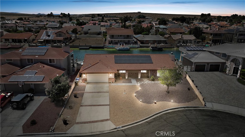 PRICE IMPROVEMENT!!! NORTH LAKE GEM NEAR OPEN WATER! Located on one of the widest channels of North Lake and just moments from open water, this beautifully updated lakefront home sits at the end of a quiet cul-de-sac on an expansive 11,000+ sq ft lot—a rare opportunity in the private Silver Lakes community. Step inside to a completely new kitchen featuring a new hood range and a dedicated drinking water faucet with its own filtration system. The open-concept layout flows effortlessly, with updated recessed lighting, new interior and exterior light fixtures, and tile flooring throughout the main living areas. Enjoy panoramic water views from the living room, dining area, kitchen, and primary suite. This home has been extensively upgraded, including: New windows and screens throughout, New sliding doors with screens, New blinds on every window Updated ceiling fans in all rooms, New entry door and new bedroom/bathroom doors, Freshly painted interior, Water softener system for the entire house, Solar panels for energy efficiency. The spacious living area includes a gorgeous brick fireplace and built-in wet bar, perfect for entertaining. Step out onto the oversized back patio with plenty of space to host guests or relax lakeside. A low-maintenance Trex dock makes boating and water activities a breeze. Silver Lakes offers resort-style living between Victorville and Barstow with low monthly HOA dues and an incredible range of amenities: 27-hole championship golf course, Tennis, pickleball, and bocce courts, Olympic-size swimming pool, 24-hour gym, Library and elegant clubhouse, Equestrian facilities with horse stables, Two scenic lakes for boating, fishing, paddle boarding, kayaking—even windsurfing, Beach and boat launch access This home truly has it all—upgraded inside and out with every modern comfort in an unbeatable lakeside location. Come experience it for yourself—this one won’t last!