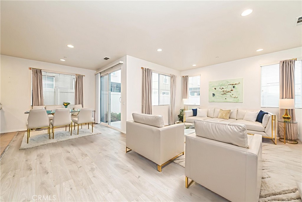 Located in the highly sought-after College Park community, this beautifully designed detached home offers 4 bedrooms and 3.5 bathrooms, with a highly desirable main-floor bedroom and a bathroom, plus a convenient powder room for guests. The home features a bright and spacious open-concept layout, seamlessly connecting the family room and kitchen to create a comfortable and inviting living space. The kitchen is equipped with a large chef’s island, perfect for cooking and entertaining. Enjoy dining while overlooking the private backyard, adding a unique and charming touch to everyday meals. Upstairs, you’ll find three additional bedrooms, along with a versatile open loft that can be used as a home office or second family room. The loft opens to a balcony, and both the balcony and one of the upstairs bedrooms offer beautiful sunset views. (All property photos with furniture feature virtual staging) Laminate flooring runs throughout the living areas and bedrooms, while the kitchen and all bathrooms feature tile flooring, making the home easy to maintain, clean, and bright. Additional highlights include a 2-car garage and a private backyard. Residents enjoy access to a large community clubhouse with resort-style amenities, including two swimming pools, a fitness center, meeting rooms, BBQ areas, a party room, and various sports facilities. Ideally located near schools, shopping, and dining, with easy access to the 71, 91, and 60 freeways. A wonderful opportunity you don’t want to miss!