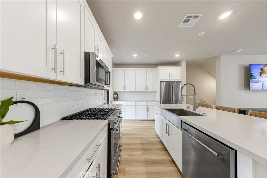 Welcome to luxury living at its finest in the this stunning residence. Step into a world of sophistication with a fully upgraded unit that comes complete with high-end appliances, ensuring both style and convenience. The wood floors flow seamlessly throughout the whole home and opens up beautifully to a private balcony off the kitchen allowing natural sunlight to brighten up the space. Completed in the Summer of two thousand and two and strategically situated next to the showrooms, making it the prime location within the community. The inclusion of Energy Star Dual Zoned AC emphasizes our commitment to efficiency and eco-friendliness. This smart home is equipped with cutting-edge features, including a Video Doorbell, WiFi garage door opener, WiFi door lock, and WiFi stage. Enjoy the convenience of a quick jump to freeways and the waterfront or peaceful walks in the gated community complete with security. Location is everything and this property has it all. Come take a look while you can and call this property your home today! Pet friendly!!!