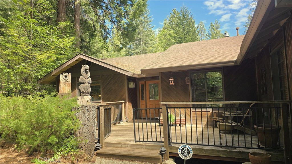 CREEKSIDE MOUNTAIN LIVING! Set alongside Middle Butte Creek, this property offers a tranquil setting with the soothing sounds of the babbling brook, a bricked patio with fire pit, shaded by towering pines—perfect for relaxing or entertaining. The fully usable property also features a side gate for easy backyard access and is easily maintained with full irrigation and drip systems. The property is also home to abundant year-round wildlife, including deer. In spring, the grounds come alive with vibrant blooms including azaleas, rhododendrons, periwinkle, columbine, foxgloves, dogwoods, and more. A large front deck and attractive tile entry welcome you into this inviting home, where the open living and dining areas feature gorgeous hardwood floors, a woodstove on a stone-accented hearth, and peaceful views of the private backyard. The kitchen is well-appointed with a newer refrigerator & double-ovens, a double-drawer dishwasher, attractive ceiling accents, and a breakfast bar that opens to the spacious dining area with French doors to the back deck—ideal for indoor-outdoor living. The primary suite offers both comfort and convenience, complete with a private door to the balcony-style back deck, a walk-in tile shower, large dressing and vanity area, and a double-door walk-in closet. Two additional guest bedrooms provide flexibility, with one featuring its own private balcony access and the other offering a large window with views of the flowering front yard. The hall bathroom offers ample vanity space, and a decedent jetted tub with a custom tile surround. Designed for efficiency and year-round comfort, the home includes a newer 5-ton American Standard energy-efficient heat and air system, a Lennox Healthy Climate media air cleaner, a heat exchange unit that distributes warmth from the fireplace to the bedrooms. The spacious game room has French doors to the outside, a pellet stove w/a river-rock hearth, plus a wall-mounted AC and attic fan. Additional highlights include an aggregate driveway with a large parking area and RV space. Beneath the home, a full workshop & storage area with a concrete patio entrance providing excellent functionality, along with a separate storage room on the lower south side. With multiple outdoor living spaces, ample indoor space, thoughtful upgrades, and a peaceful creek-side setting, this wooded mountain retreat offers a rare blend of natural beauty, functionality, and comfort all nestled at the end of a quiet cul-de-sac.