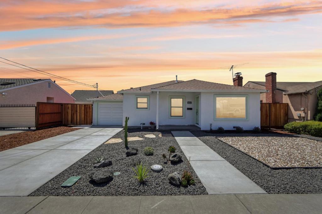 Welcome to 14973 Patton Ave, a beautifully renovated 2 bed, 1 bath home offering 998 SqFt of stylish living on a 5,304 SqFt lot in the heart of San Leandro. The home features a leveled structure with all new drywall and fresh interior paint, plus a fully updated kitchen and bathroom. Enjoy new flooring throughout, updated electrical and plumbing, new heating & A/C, and a newer roof. The open layout is bright and welcoming, filled with natural light. Outside, the new concrete driveway and rear patio complement the professionally landscaped front yard. The large side yard allows for RV parking, while the spacious backyard offers endless potential for expansion or an ADU. Includes 240V for EV charging and laundry. Ideally located near parks, schools, shopping, dining, BART, and major freeways. Perfect for first-time buyers or those looking to downsize. This move-in-ready home is not to be missed!