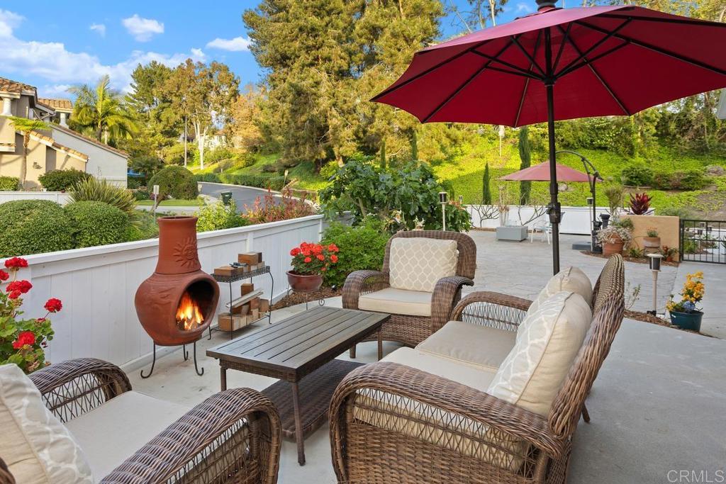 This beautiful home sits on a private elevated corner lot within the Bella Vista community of Shadowridge. Landscape lighting (changeable colors to enhance the mood) highlights the statuesque Italian Cypress trees and tropical plantings along the driveway and throughout your outdoor space. Vibrant and colorful rose bushes lead you to the entry gate and into the fully fenced spacious yard, ideal for entertaining. Custom pavers, firepit, with just a touch of the button you can turn on your choice of music with the exterior, high quality sound system for the perfect ambiance, fragrant Pumerias, fig & avocado trees, solar lighting, discreet enclosure for waste bins. The stunning, highly updated, open kitchen area is a chef’s dream. Featuring gorgeous quartz countertops and large center island with barstool seating. Abundance of soft close white cabinets, stainless steel appliances, beverage cooler, glass tiled backsplash. The dining area features even more cabinet space with a built in quartz counter hutch, dual sided fireplace, sliding doors to back patio. Luxury vinyl plank flooring throughout the light filled main level, dual sided fireplace in living room, soaring ceilings. Main level laundry room…washer & dryer included. Brand new carpeting leads you up the stairs to the bedrooms and loft (perfect for a home office), the primary bedrooom features a spacious walk-in closet, vaulted ceilings with sliding doors lead to the private balcony with views. Two car garage with overhead storage rack. Owned solar! Just a short walk down the street you will find the Bella Vista community’s very well maintained pool, hot tub and spa …relax, swim and enjoy! The beautiful, private Shadowridge Country Club is just a few blocks away offering both golf and social memberships.