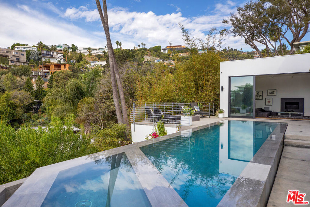 Stunning architectural modern with jet liner city and ocean views. Infinity saltwater pool, 10′ ceilings, drop down movie screen and projector in living room. The entire downstairs opens to the view and pool area. High end finishes, Miele kitchen with double dishwasher , 2 sinks , and large wine fridge. Crestron smart home. Very Private and secure . cul d sac street, quiet and private and simply one-of -a-kind.