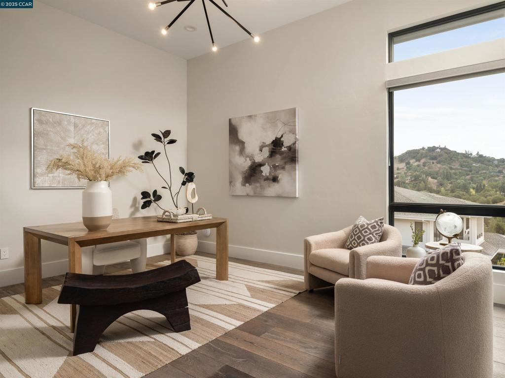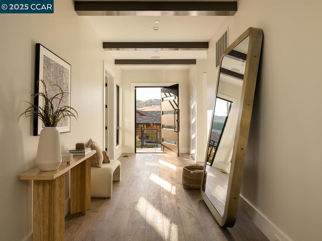 This extraordinary modern contemporary home was designed by architect Steve Kubitschek and built in 2019. Experience elevated modern living, curated for those who appreciate exceptional quality and design, in a serene and exclusive enclave of Lafayette’s Reliez Valley. Complete with a secure, gated entry, a double-edged infinity pool overflowing into hillside views, and sunsets that will take your breath away. Spanning 4,953 square feet, this residence features five bedrooms and six bathrooms, including two entry-level suites and a private office. The open floor plan is accentuated by soaring 12’+ ceilings and designer finishes. The chef’s kitchen is equipped with Thermador appliances, and the dining area boasts an impressive walk-in wine refrigerator with 8′ glass doors for elevated entertaining. Step outside onto the brand new 900+sqft wide plank deck with built-in BBQ and enjoy the stunning panoramic views over the sparkling double-edge infinity pool and spa. The property sits on a 22,170 square foot lot, with awe-inspiring views of the Lafayette hills. 155 Arbor View Lane is Lafayette modern living at its absolute finest.