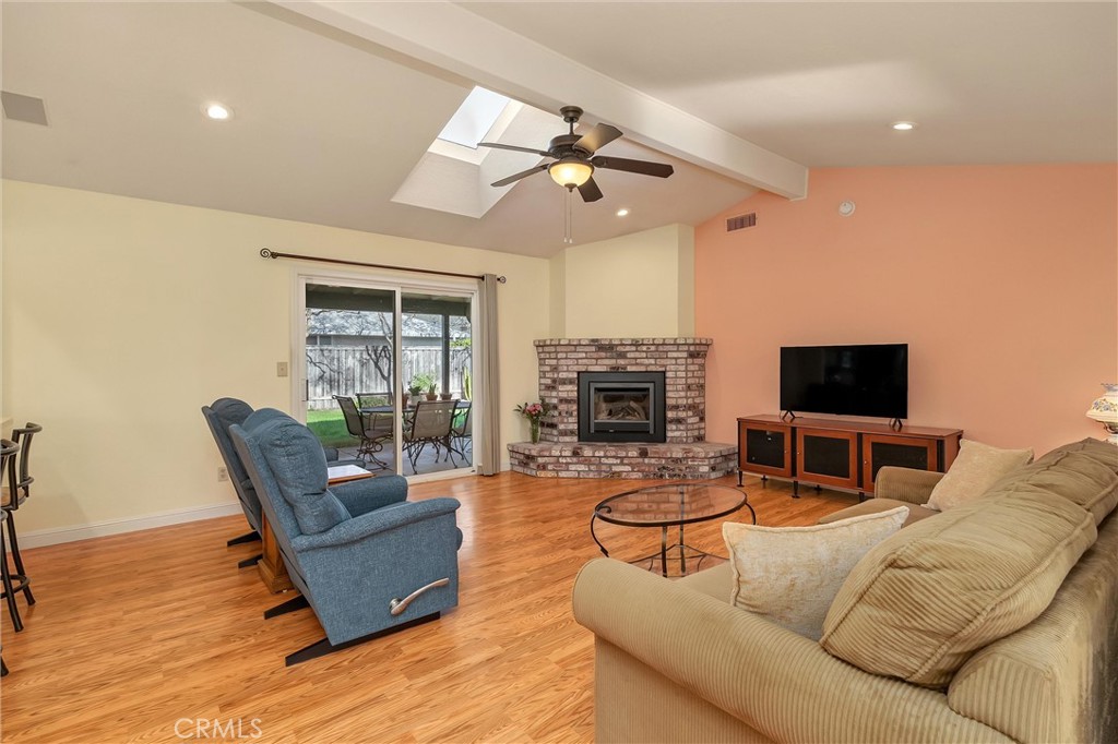 Value, Convenience, and Lifestyle — in one of Chico’s most desirable neighborhoods. Located in the sought-after Amber Grove community, this well-maintained corner-lot home features wood laminate and tile flooring leading to a spacious kitchen with quartz countertops and stainless steel appliances. The inviting living area with cozy gas fireplace creates a warm gathering space. The primary suite includes dual sinks and walk-in closets. A versatile bonus room provides ideal space for an office, playroom, or guests, and a dedicated laundry room adds everyday convenience and functionality. Thoughtful upgrades include a security system, a water softener, leaf-guard gutter protection, dual-pane windows, and an attractive storage shed. A spacious 2.5-CAR GARAGE offers rare flexibility — ideal for additional storage, a workshop, recreational gear, or oversized vehicles. The fully fenced backyard with patio and cooling roof is designed for both relaxation and enjoyment. Mature crepe myrtles provide stunning seasonal color. Minutes from Peterson Park, with walking paths and green space, this area is especially appealing for families and active lifestyles. New residential development contributes to a vibrant, growing community atmosphere. Positioned next to a quiet, low-traffic commercial building and across from a newly developing apartment community, this charming property presents a smart opportunity to own in a walkable, beautifully established area near the Esplanade.