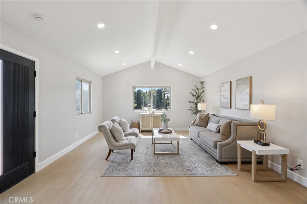 Newly renovated Granada Hills gem situated on a spacious corner lot. This single-story home boasts a modern open-concept layout with brand-new interior and exterior paint, a new roof, and upgraded laminate flooring throughout. The stunning chef’s kitchen is the centerpiece of the home, featuring a 9-foot waterfall island with granite countertops, added cabinetry and pantry space, and sleek recessed lighting that flows seamlessly into the living and dining areas. Offering two primary suites and three fully remodeled bathrooms, this home is designed for comfort and flexibility. Every detail has been thoughtfully updated, including a 200-amp electrical panel, new garage door, fully drywalled garage with epoxy flooring, and recessed lighting. With its huge lot, curb appeal, and high-end finishes, this move-in-ready property is the perfect blend of modern design and everyday functionality.