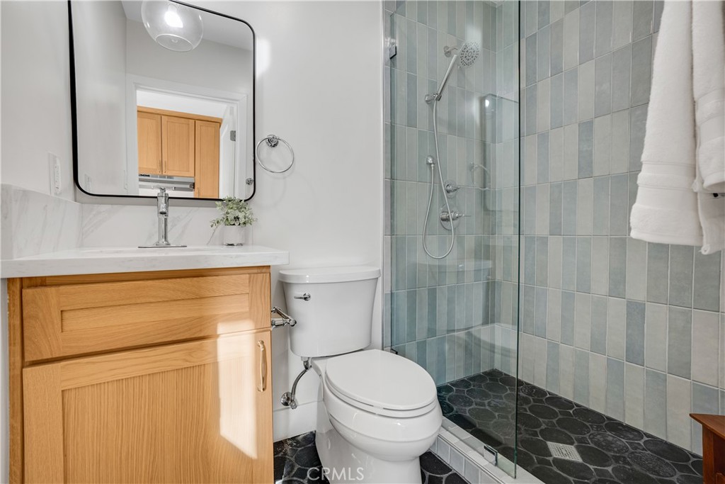 Tucked into the hills of Elysian Heights, this beautifully restored bungalow blends classic California character with refined modern design. Extensively updated while honoring the integrity of the original home, it offers a rare opportunity to own a century-old residence in true turnkey condition. Natural light moves easily through the open living and dining spaces, creating warmth and flow throughout. The interiors have been thoughtfully reimagined with cohesive finishes and a balanced mix of vintage charm and contemporary detail. The fully renovated kitchen features custom oak-tone cabinetry, mitered-edge stone countertops, and new stainless steel appliances, framed by a signature arched entry that nods to the home’s architectural roots. The bathroom has been redesigned with floor-to-ceiling blue vertical stack bond tile and black hexagonal flooring, delivering a clean, timeless aesthetic. Modern comforts include central air conditioning, energy-efficient windows, indoor washer and dryer hookups, and a brand new roof, providing the ease of updated living within a character-rich home. Set behind a private gated drive, the property offers rare three-car parking and a detached garage with a new roof and door, ideal for flexible use as a studio, gym, or additional storage. The backyard extends the living space outdoors, offering privacy within one of Echo Park’s most desirable hillside enclaves. Just moments from sought-after Eastside destinations including Echo Park Lake, Dodger Stadium, Canyon Coffee, and Downtown Los Angeles, offering both convenience and retreat in one of the Eastside’s most dynamic neighborhoods. Approximately 759 square feet per professional floor plan. Buyer to verify all information.