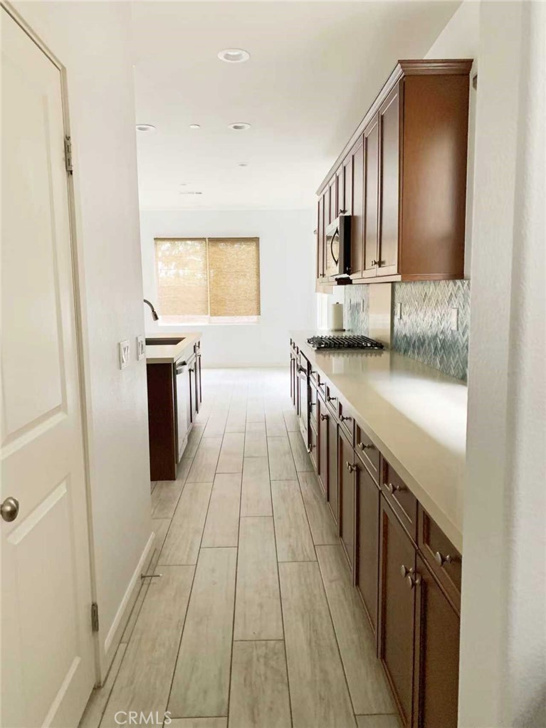 Welcome to this beautifully upgraded Cal Atlantic residence featuring over $65,000 in high-quality upgrades. Filled with natural light, the home showcases a dramatic vaulted entry with a modern chandelier and an open, airy layout. The main level features upgraded plank-style tile flooring and an open-concept design connecting the kitchen, dining, and living areas — ideal for both daily living and entertaining. The chef’s kitchen offers a spacious island, stainless farmhouse sink, quartz countertops, Whirlpool stainless appliances, a striking blue herringbone backsplash, dark wood cabinetry, walk-in pantry, and stylish pendant lighting. Upstairs, tile flooring continues throughout. The luxurious primary suite includes a walk-in closet with custom built-ins and a spa-inspired bath featuring dual vanities, a soaking tub, and a rain shower with glass enclosure. A versatile loft (convertible to a bedroom), two additional bedrooms with great natural light, and a dual-sink guest bath complete the upper level. The low-maintenance backyard features vinyl fencing, artificial turf, and a decorative water feature. The upgraded garage includes epoxy flooring, a tankless water heater, two EV chargers, and a LifeSource whole-house water system. Leased solar panels enhance the home’s energy efficiency. Located in the Preserve HOA, residents enjoy walking trails, parks, a clubhouse, playgrounds, courts, dog parks, and pool and spa amenities. A truly turnkey home combining modern upgrades and resort-style community living.
