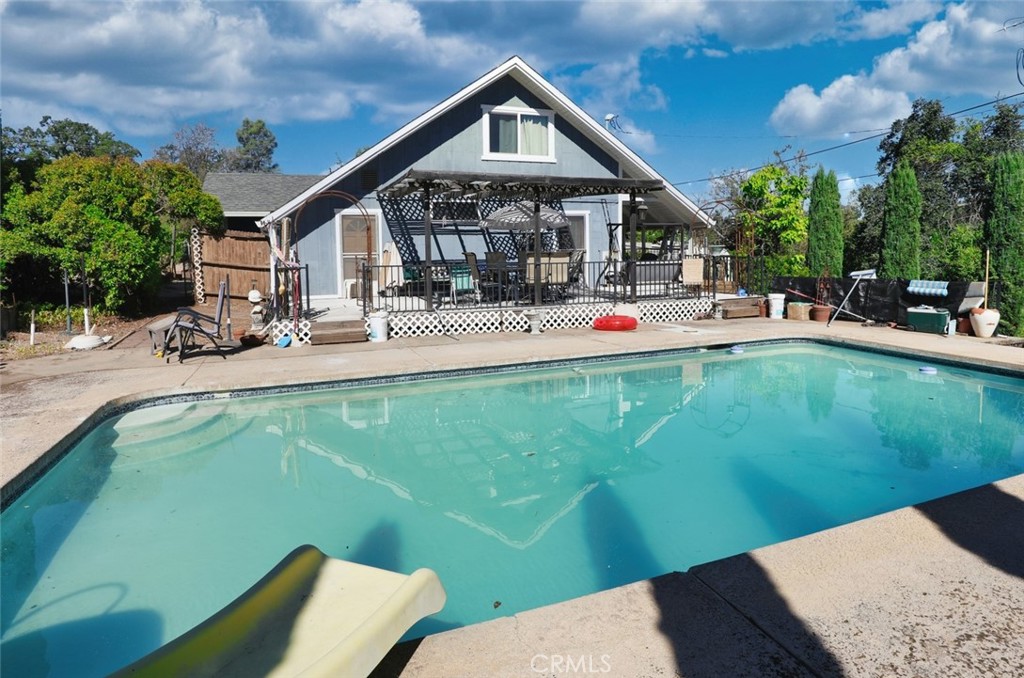 This home is located on aq fenced lit that is over 1/2 acre and has ample parking for your boat, travel trailer or R/V. With out buildings and a single car garage you’ll have room for all your outdoor things. The large, shaded back deck adjoins the built-in swimming pool, and a great outdoor area for you and all your family and friends. The front porch is large, covered and inviting, it’s a great place to welcome your family and guest. The living areas features ceiling fans, and the front room has a fireplace, laminate flooring, monitor heating and wide-open space. Durable marble countertops in the kitchen a value to your home and makes cleanup a breeze. This one will sell fast, don’t miss out on the opportunity to make it yours. Also, extra room up stairs could be another bedroom or office. Extra-large bathroom with laundry inside.