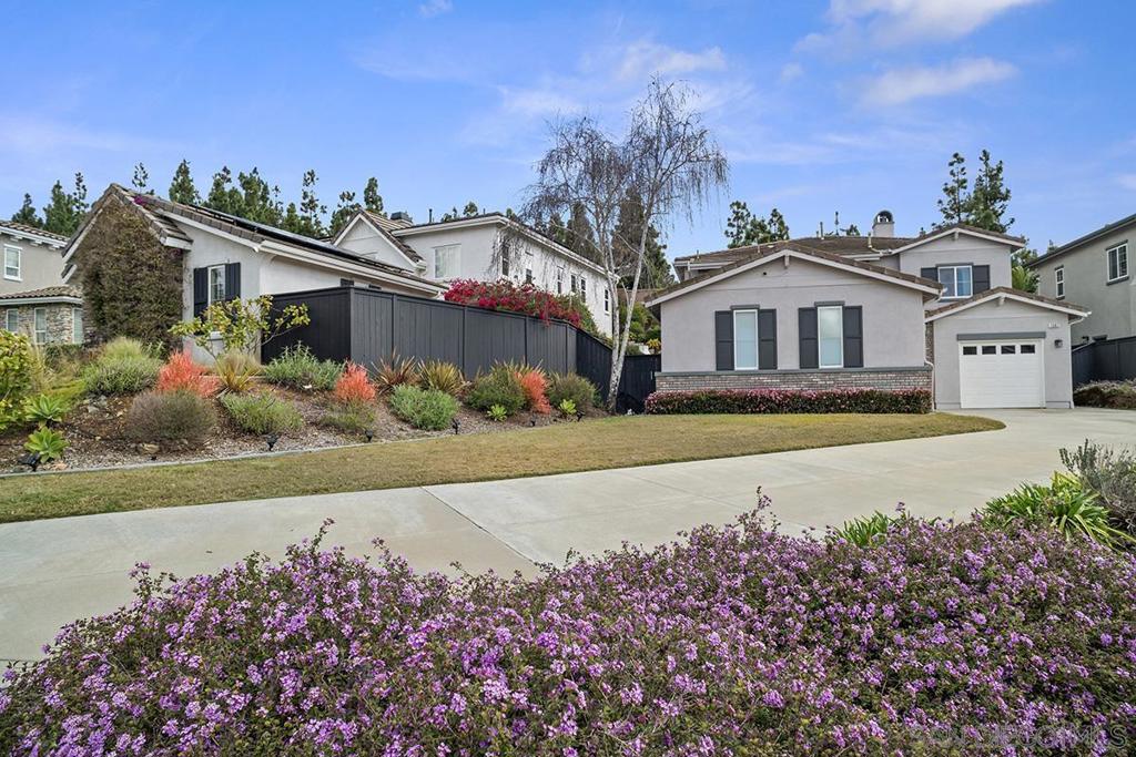 This Residence 3 Casa Cortona home situated in Crest View neighborhood of San Elijo Hills. It has a Bedroom & full bath on 1st floor. Extended drivewy leads to 2-car garage AND 1-car garage. Formal entry. Separate LR from FR w fireplace. Beautiful kitchen w oversized island & side breakfast area. Heightened ceilings & LVP flooring in most rooms. Spacious main BR upstairs w/ ensuite nursery, office, or workout Rm. Front balcony w/ French doors & ocean view. Upstairs laundry Rm. Large backyard w stamped concrete patio, grass area & sloped hillside w trees. No neighbors behind. Enjoy access to trails, park, San Elijo & San Marcos Schools, beach & shopping.