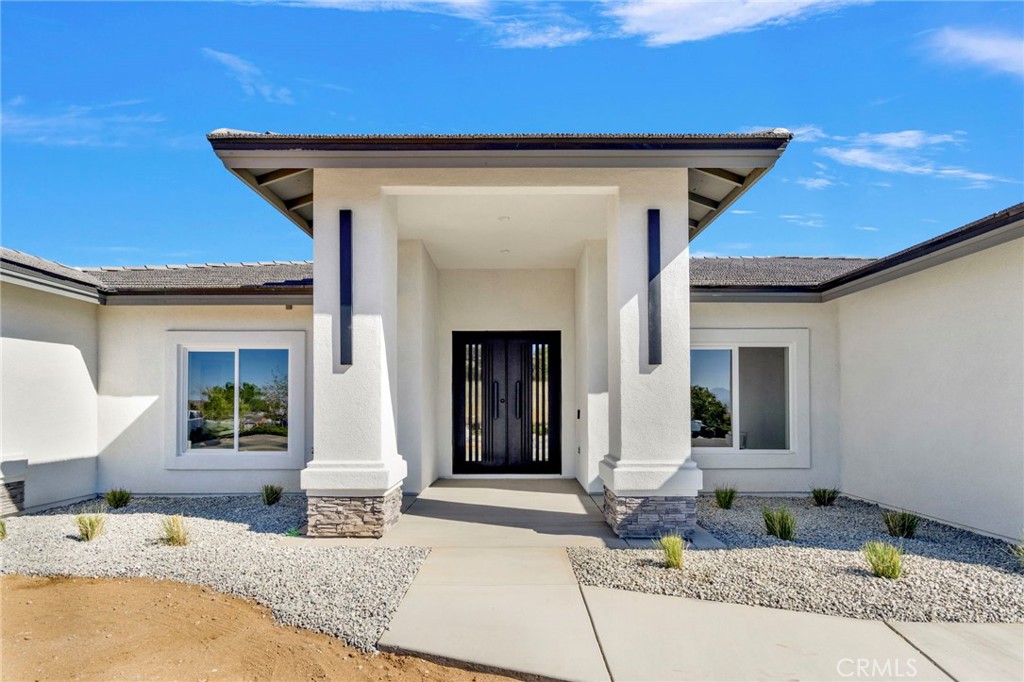 NEW CONSTRUCTION! This BEAUTIFUL 4 bedroom 3.5 bathroom contemporary split floorpan home features an open concept with MASSIVE living area open to the kitchen, 2 master suites, VIEWS OF THE WHOLE VALLEY from this FLAT CORNER LOT and so much MORE! The spacious kitchen features a large center island, quartz counters, pendant and under cabinet lighting, soft close cabinets and drawers, breakfast nook, walk in pantry, double oven and is open to the living space which boasts high ceilings, modern fireplace, recessed lighting, and wood-look tile flooring. The 2 master suites each have large en-suite bathrooms with custom walk in showers with frameless glass enclosures, dual vanities, and HUGE walk in closets. The main master also features a large soaking tub. This ENERGY EFFICIENT home includes OWNED SOLAR, tankless water heater, low-E windows, and Energy Star appliances. The oversized 3 car garage provides plenty of space for your toys! Additional features of this HIGH QUALITY home include full-width covered back patio, indoor laundry / mud room, with utility sink and 1/2 bathroom, and tons of storage. Quality and attention to every detail is evident throughout. This AMAZING home sits in one of the BEST NEIGHBORHOODS in Apple Valley and has VIEWS! This is truly a MUST SEE property!