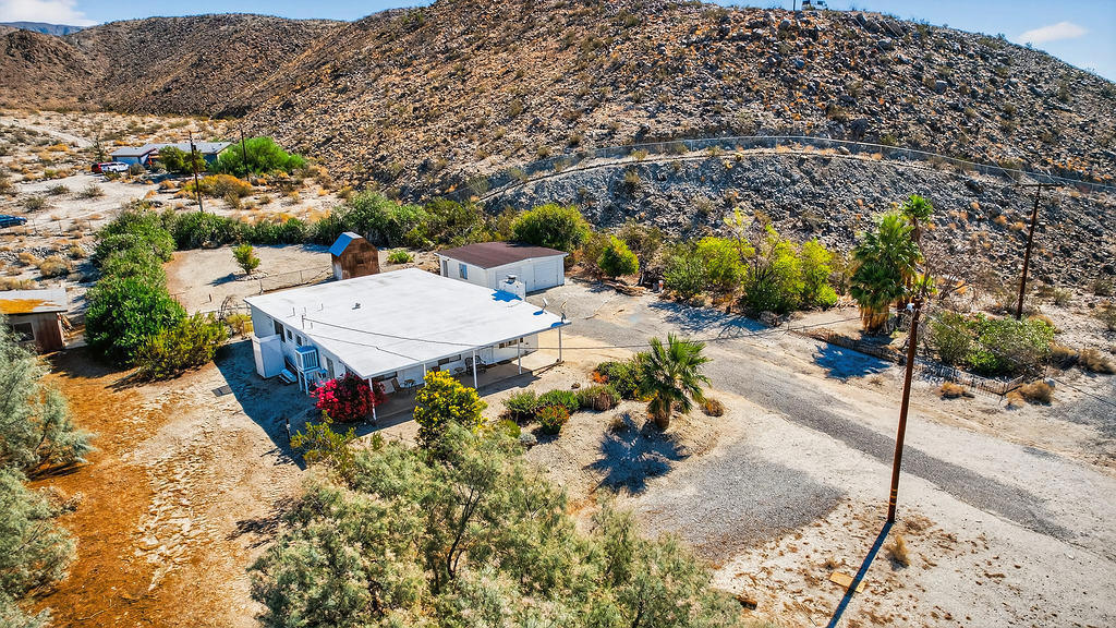 Wonderful views of the mountains from an elevated site. Improvements are clustered, including the main house, garage, and detached studio.The furnishings can be included, either as a turnkey or they can be sold outside of escrow for a reasonable price.There is a third bedroom potentially, which owner uses as the primary bedroom–but without a closet.If you want seclusion with security, this compound sits on five fenced acres with a locked gate.Here are some great features: There is a 30 amp hookup for an RV; There is an Irrigation system with controls in the garage that covers all the plants and trees.