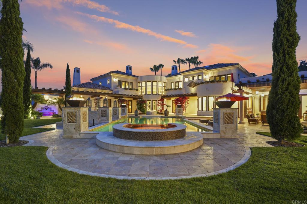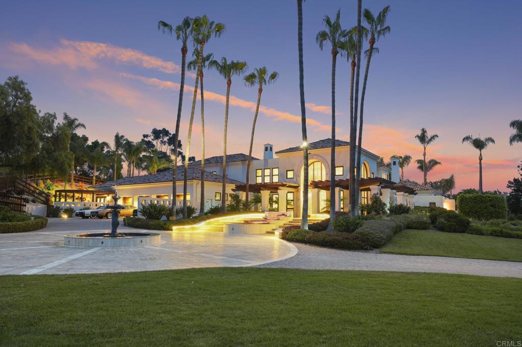 Set at the end of a winding private drive in Rancho Santa Fe’s highly coveted West Side Covenant, this property encompasses 1.84 fully fenced and gated acres, offering exceptional privacy, surrounded by mature landscaping and close access to the Rancho Santa Fe trail system. Designed by acclaimed architect Doug Austin, the spacious living and dining rooms, bathed in natural light, are ideal for grand-scale entertaining. A true chef’s dream, the gourmet kitchen showcases top-tier appliances, crisp stone countertops, custom cabinetry, an oversized center island, a casual seating bar, and a sunlit breakfast area—all opening to the warm and inviting family room, complete with a fireplace, full bar, and built-in media center. Glass doors lead to an expansive covered veranda, perfect for year-round indoor/outdoor living. The main-level primary suite is a well appointed private sanctuary featuring a luxurious fireplace, and walk in dressing rooms drenched in custom woodwork. A richly appointed office/library with fireplace and four additional en-suite bedrooms—three of which are located upstairs with private terraces—provide ample space for family or guests. A separate guest casita offers two additional bedroom suites and a full kitchen, ideal for extended stays or multigenerational living. The resort-inspired outdoor amenities are truly exceptional: a glass-accented beach-entry pool with swim-up bar, oversized spa, dramatic fire bowls, a summer kitchen, pool bath, firepit, and multiple lounge and dining areas nestled into lush surroundings. A fruit orchard, raised-bed vegetable garden, and expansive lawn complete the outdoor oasis. Additional highlights include: six fireplaces (three dual-sided), rich wood and stone flooring, hand painted ceilings, Lutron lighting system, extensive detailed glass accents, full home automation, climate-controlled wine room, natural gas, and garaging for four cars with ample driveway spaces for additional cars. Located within the award-winning Rancho Santa Fe School District with access to Roger Rowe, and just minutes from the RSF Village, golf and tennis clubs, scenic trails, and world-class beaches—this is the epitome of luxurious Covenant living.