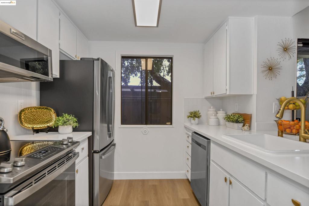 Beautifully updated and move in ready! This lower level condo is located in the park like setting at Antioch Parkridge, a GATED community. The spacious, open floor plan has beautiful luxury vinyl plank flooring throughout, new 5 inch baseboards, newer interior paint and all new light fixtures and ceiling fan. Upgraded kitchen has gorgeous quartz counter tops with subway tile backsplash, white cabinets with new hardware, new stainless steel appliances, refrigerator included and mirrored wall to wall pantry in dining area. Updated bathroom has quartz counters, new mirrors and new shower doors. Features include in-unit laundry (washer/dryer included), central heat and air, large private patio, loads of storage space and centralized location near the community pool and other amenities. Enjoy this beautifully manicured, treelined community that has plenty of guest parking and is next to the newly renovated Contra Loma Estates Park with dog park, picnic BBQ area, rock climbing wall, basketball courts. Close to schools, shopping, restaurants, Costco and easy freeway access. Check it out!!