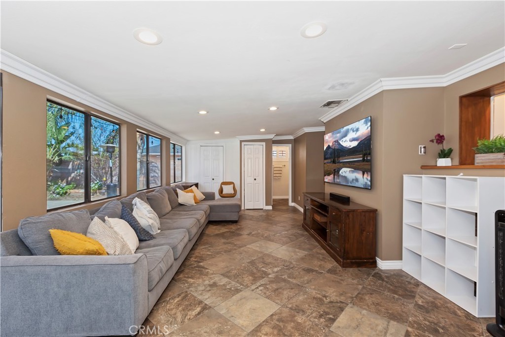 Marvelous and spacious home on a street that rarely has a house for sale. Attractive interior with 3 bedrooms, 1.75 baths, large family room, indoor laundry, spacious updated kitchen with granite counters, walk-in pantry, lots of cupboards with under cabinet lighting, large single-basin farmhouse style sink. Fans in most rooms & newer recess lighting, lovely crown molding and white shutters throughout. Many updated features. Large lot with block walls. Long, long driveway able to park multiple vehicles. Double metal gate. RV parking possible in front of 2 car detached garage with work bench and shelves. Side yard could be a potential dog run area. The big backyard has lots of mature shrubs and plants and plenty of room for a garden, covered patio, expansive area with concrete and flagstone pavers for all those parties and wheeled toys. Included in sales price: washer and dryer, range and refrigerator!!