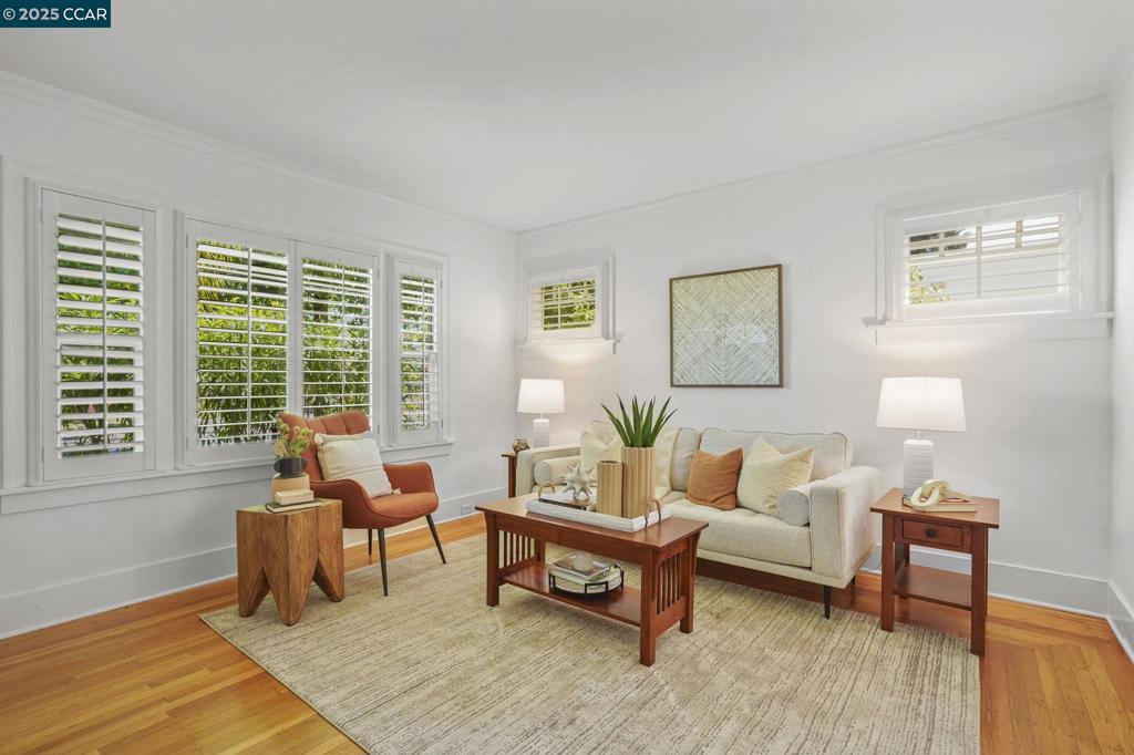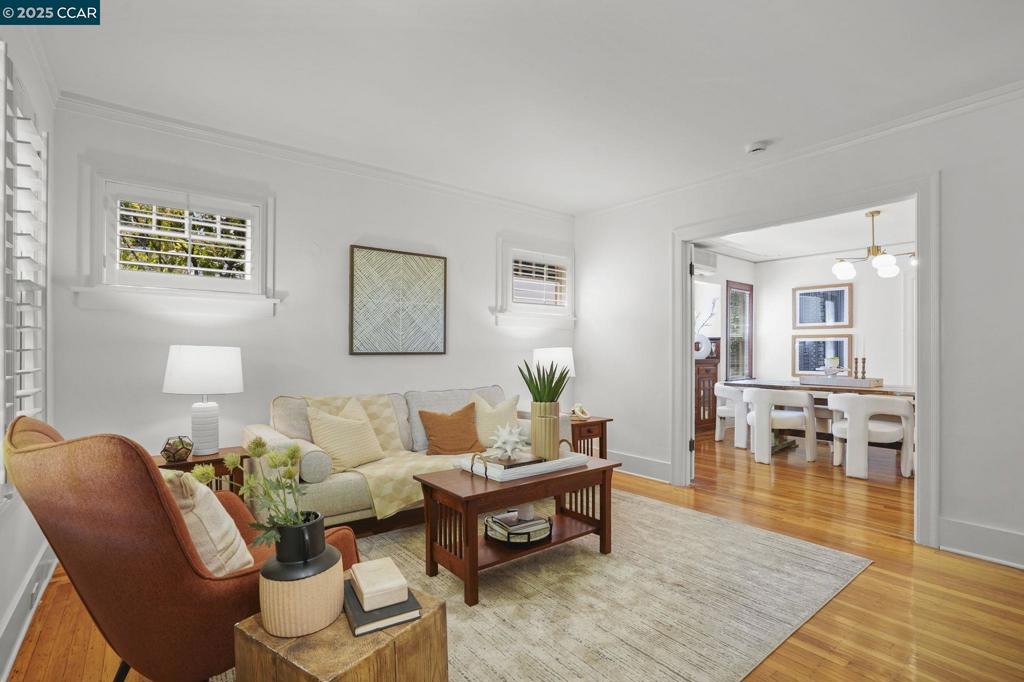 Step into a world of creativity and charm with this unique 2BD/1BA bungalow, just steps from downtown Martinez. Lovingly maintained by a local artist, this home radiates character with light-filled spaces, rich original hardwood floors, and mostly new windows—some with classic wood shutters. The cozy living room with original French glass doors opens to a flexible dining or bonus space with built-ins. Bedrooms are spacious and bright; the bathroom is cheerful and updated. A charming kitchen with breakfast nook and a functional mud/laundry room lead to the backyard. Outside, find two separate sheds perfect for studios or offices, plus a detached garage with ADU potential. Extra gated parking adds flexibility. The private backyard is ideal for peaceful evenings or gatherings under the stars. All this, just a short stroll to cafes, shops, and the vibrant arts scene downtown. Whether you’re an individual, a couple, or a family looking for a soulful home with creative energy, this special property invites you in.