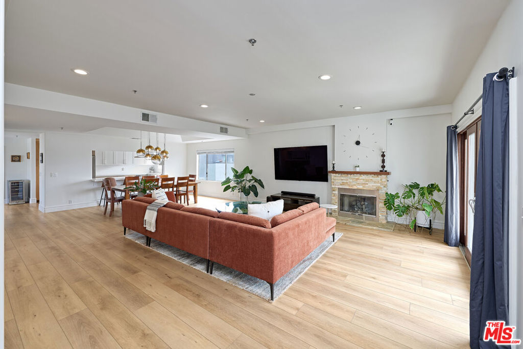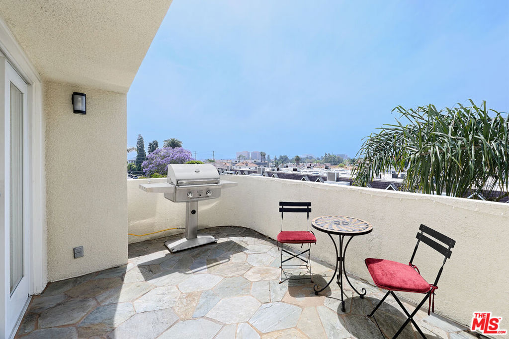 Encompassing the entire top floor of a boutique building in the heart of the trendy West LA Sawtelle neighborhood, this stunning, extensively remodeled penthouse offers an exceptional blend of privacy, scale, and panoramic city views. Enter via your private elevator landing into a bright, open-concept living and dining space, highlighted by soaring 9-foot ceilings, expansive south-facing windows, and unobstructed 360-degree skyline vistas, including views of the Getty. Designed for both everyday living and entertaining, the chef’s kitchen features sleek quartz countertops, custom light oak soft-close cabinetry, and premium stainless steel ZLINE appliances. The well-appointed layout includes a luxurious primary suite with a cozy fireplace, and boasts a spa-inspired bath with travertine stone, dual floating vanities, quartz countertops, and an oversized jetted soaking tub. There are two additional large bedrooms with ample closet space. Step outside to a generous front balcony with a built-in storage closet, or retreat to the expansive two-level rear deck with low-maintenance Trex decking and a remote-controlled awning, perfect for indoor-outdoor California living. Additional highlights include durable high-end LVP flooring throughout, in-unit laundry, EV charger readiness, and a newer 4-ton heat pump HVAC system. In close proximity to several excellent restaurants, “Little Japan” on Sawtelle, convenience stores, and a park, this is a rare opportunity to own a sophisticated penthouse residence with breathtaking views and unmatched outdoor space, in the heart of everything vibrant West Los Angeles has to offer!