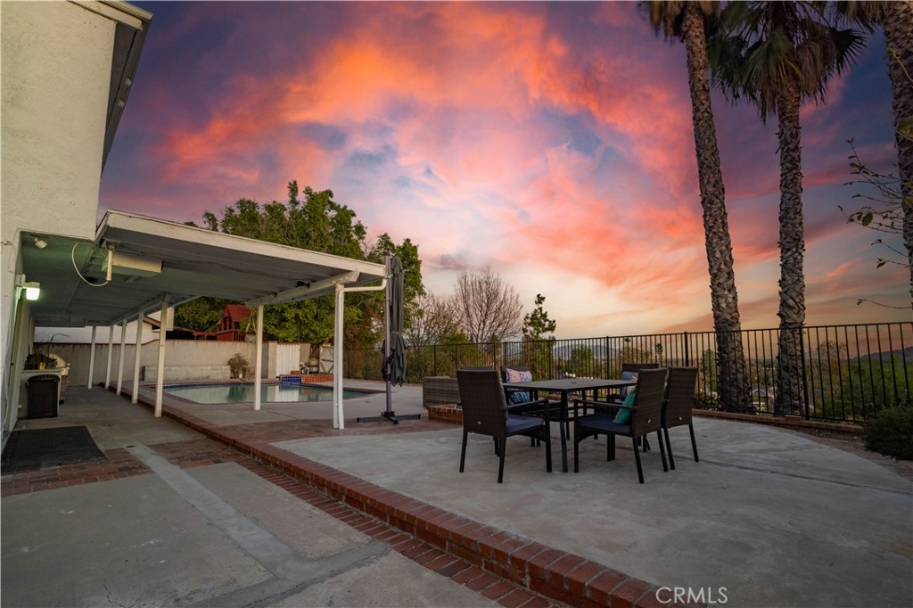 “NOW WITH COMPLETELY REMODELED KITCHEN” This beautiful home is nestled amidst gently rolling hills in one of Granada Hills most prestigious North of Rinaldi Street neighborhoods, and has unobstructed panoramic views of the Valley below. Here are just a few of its many other outstanding features: Its long driveway flanked by lushly landscaped brick capped planters and extensive masonry enhance its eye-catching curb appeal Double doors swing open to a flowing 2,338 square foot open concept floor plan that is in “Move-In-Condition” with plantation shutters, and an aesthetic blend of laminate and tile flooring The spacious living room is bathed in natural light from its sliding glass patio door, and has a cozy fireplace with raised hearty, plus a entertainer’s wet-bar The family’s cook is going to truly appreciate the kitchen’s abundant cabinets, ample quartz counters, durable dual basin stainless steel sink, gas cook-top with ventilation hood, built-in appliances, and the convenience of the very large adjacent dining room 4 bedrooms; The grand suite has a large walk-in closet and a beautifully appointed bathroom with large mirrored vanity, and custom tiled glass enclosed shower with seat plus handheld and rain shower heads A total of 2½ bathrooms; The ½ is located on the first level for your guests Central heat & air for year-round comfort The energy efficient double pane windows and huge solar panel array will help keep your utility bills low You’re going to spend countless hours enjoying the backyard’s spectacular views, covered entertainer’s patio, sundecks, fire-pit, sparkling pool and soothing spa Plenty of secure off street parking on the oversized concrete driveway and in the 2 car direct access garage All of this sits on a huge 10,988 square foot private lot that is within walking distance of Knollwood Country Club and Golf Course, and close to shopping, grocery stores, restaurants, and the 118 freeway .