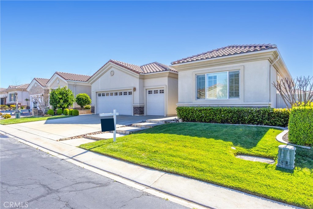 Welcome to 1732 Brittney! A Del Webb home and Solera’s largest model at 2,127 Sq ft. The ‘EMERALD’ features 2 Bedroom’s, 3 Baths + Den/Office . It includes TWO Primary Bedrooms with En Suite Bathrooms & Walk-in Closets; each located on opposite ends of the home with privacy in mind. The Kitchen is well thought out, with a large Island/Breakfast Bar with ample storage, cabinetry & counter space. With BEAUTIFUL upgraded wood flooring and crown molding throughout, it is an Entertainers delight. Family and friends alike will appreciate the open floor plan, where people can gather and mingle, flowing seamlessly into the back yard, enjoying the peaceful fountain, covered patio and rock garden. The AC unit was replaced and it still has a 5 year warranty left on it. A new heating unit was installed in 11/24. Solera offers a Clubhouse, Library, Meeting & Banquet Rooms, Pool, Spa, Indoor Gym, Indoor Track, Tennis Courts, Billiards, , Bocce Ball, Classes & Clubs, Group Trips and 24-hour Security. Basic Spectrum Cable and Internet are included with your HOA. The Solera 55+ Community is surrounded by a picturesque mountain backdrop, and is Freeway close, I-10/60. Just a short distance to wonderful shopping, Cabazon Outlets, Casino Morongo; Golf at Oak Valley Greens; Palm Springs and Desert; Medical facilities close by, including Loma Linda University Medical Center, with medical services in Beaumont. Furniture available, inquire with Agent.