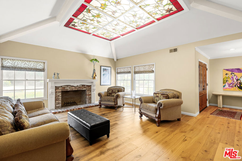 Welcome to this beautiful home, located on a quaint cul-de-sac in the coveted Amestoy Estates neighborhood of Encino. This residence sits on a massive 17,500+ square feet lot that features 6 bedrooms, 5.5 bathrooms, and an expansive floor plan of over 5,500 square feet, blending traditional charm with modern functionality. As you enter, you will be welcomed by stunning wood floors that extend throughout most of the first level. The large family room is adorned with exposed beams and soaring vaulted ceilings, making it the perfect centerpiece for hosting gatherings or enjoying a relaxing evening. The kitchen is ideally situated and showcases beautiful French doors, high-end appliances, a spacious island, and a sizable walk-in pantry. Also found on the first level is a the massive primary suite, which boasts vaulted ceilings, an elegant primary bathroom, and two walk-in closets. Three additional bedrooms, including a custom-built home office/library, complete the first level. The second level features a massive bonus room and houses two additional bedrooms. The backyard is an ideal space for entertaining or rejuvenating, entirely surrounded by mature hedges that provide privacy and ample shade around the sparkling pool and spa. A spacious grassy area can also found in the backyard, perfect a myriad of outdoor activities.
