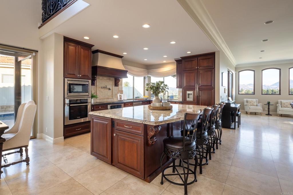 Wake up to breathtaking mountain views and stunning sunrises in this custom built enclave within Rancho Bernardo. Soaring ceilings and an open-concept design create light & bright living spaces. This property lives like a single-level with sprawling primary bedroom on main floor, spa-inspired ensuite featuring dual vanity and spacious walk-in closet, plus two additional bedrooms on this level. The kitchen boasts granite countertops, custom soft-close cabinetry, center island with breakfast bar, stainless appliances, double oven, drink refrigerator, pot filler, and butler’s pantry. Upstairs, you’ll find a fourth bed & full bath, as well as bonus loft with a kitchenette and balcony. The property has over $100K in recent upgrades, including backyard resurfaced Pebbletec saltwater pool & spa with waterfall, resealed concrete decking, and new covered patio, which makes it perfect for entertaining or relaxing to enjoy the mountain views. Additional highlights include owned solar, EV charger, whole home surround sound inside & out, 3-car garage, and no Mello-Roos. Located in close proximity to Lake Hodges, hiking trails, and golf, with Westwood Club membership providing access to pools, tennis courts, fitness center, and playgrounds, all within the top-rated Poway Unified School District.
