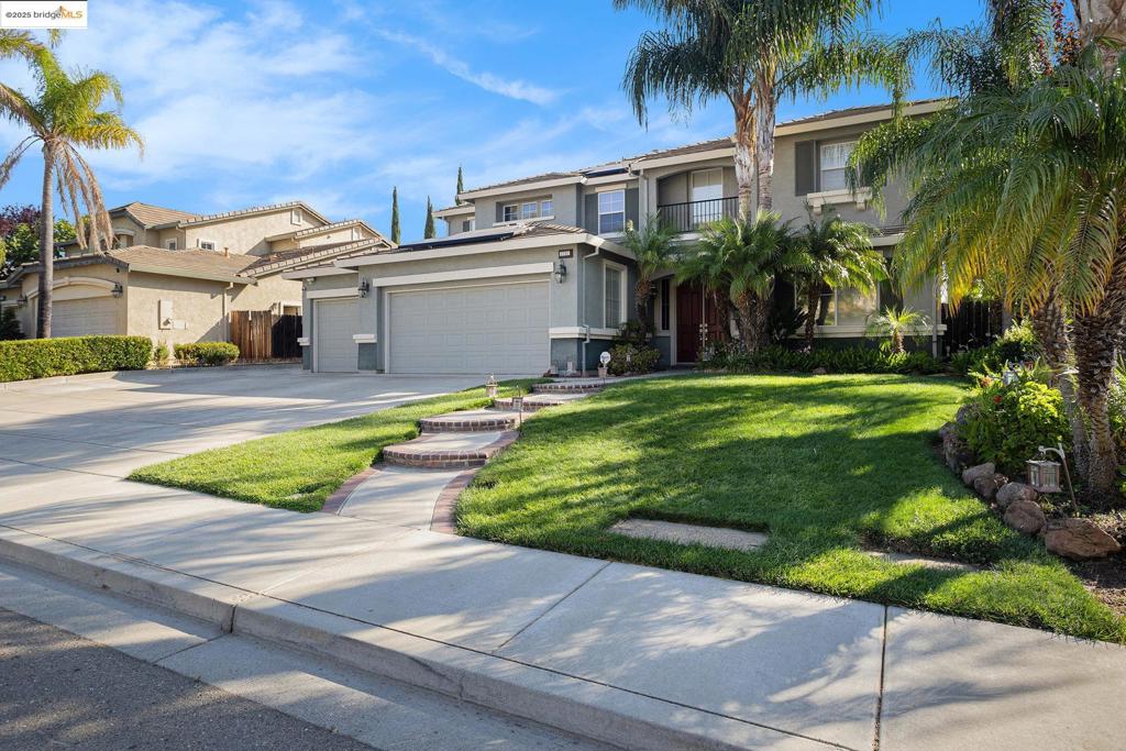 This is luxury living at its finest! 4 bedrooms + retreat and 3.5 bathrooms. Full bed & bath on main level. Wide open floor plan! Enjoy ceiling fans, dual zones for each level to have it’s own comfortable temperature. Mirrored closet doors & recessed lighting throughout. The spacious kitchen boasts a 4 burner built in gas stove, microwave, refrigerator, BOSCH dishwasher, new disposal, GE built in oven, pantry and beautiful Cherry Wood cabinets. You’ll love the separate island with double sinks & Corian counters. Washer & dryer may stay. Recent upgrades include HVAC (under 10 years new) and water heater (under 6 years new). The 3 car garage is EV ready and the owned alarm system provides peace of mind. Step outside to a serene backyard with gas BBQ and refrigerator surrounded by stamped concrete, grass and a sparkling pool with heater & waterfalls. A charming gazebo completes this entertainers dream! Here’s another benefit: the solar has a subscription through Tesla! What more could you want?