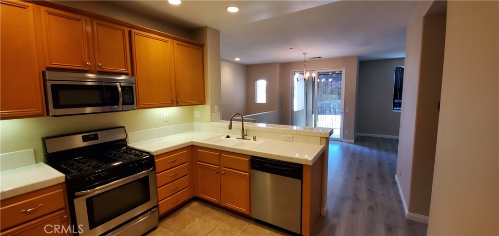 BELCARO COMMUNITY with 2 bedroom with 2 bath, End unit with balcony. The features include living room with cozy fire place. Laminated wood floor, airy and bright. Also it has work station next to kitchen, so you can work during cooking. The unit include 2 car attached garage and stack-able washer and dry include. This community has community pool and play ground for kids, closer to I-15 fwy and convenience stores, banks, and restaurants. closer to Lake Elsinore.