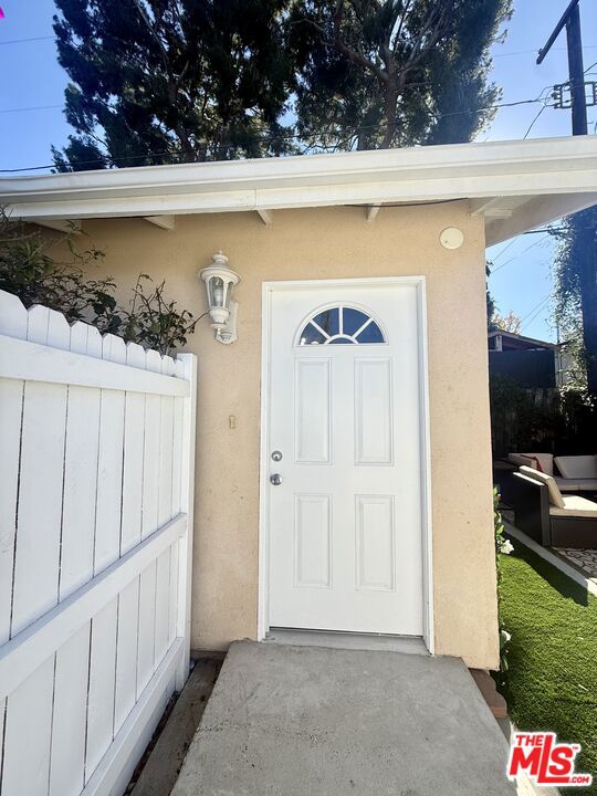 Completely remodeled, detached guest home/studio set in a secure, lushly landscaped setting with a private walkway and private yard. Ideally located a short distance to Trader Joe’s, shops, and restaurants, and just one mile north of Ventura Blvd, offering easy access to the Westside and nearby studios. This upgraded, detached guest studio features a bright, fully furnished and functional living space with stainless steel appliances, granite countertops, and in-unit stackable laundry. A private front gate opens to a fully fenced backyard, offering ample space for a pet and outdoor relaxation. The unit comes fully furnished with a queen bed, dining table with four chairs, sectional sofa with pull-out bed, and all appliances included, including laundry and outdoor furniture. Tenant is responsible for utilities; the owner covers water. Ample street parking available. Note: the main residence is located at the front of the property on the same lot. Please click and view video tour.