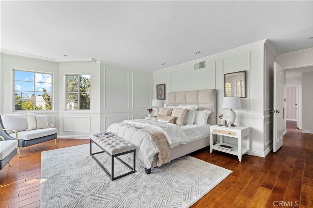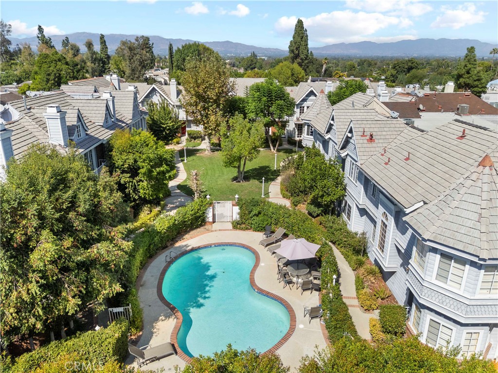 Welcome to this truly special and architecturally unique 4-bedroom, 2.5-bath townhome offering 2,356 sq ft of thoughtfully designed living space in the beautifully landscaped, gated enclave of Windemere—a hidden gem with only 24 residences. This light-filled home is full of character and charm, from its elegant turrets and curved staircase to classic picture moldings, chair rails, and detailed exterior finishes that set it apart from anything else in L.A. Inside, enjoy a perfect blend of comfort and sophistication. The expansive open-concept living and dining areas are ideal for entertaining, with a cozy fireplace and French doors that lead to a private patio—perfect for morning coffee or evening relaxation. The gourmet kitchen is a chef’s dream, featuring granite counters, a center island, stainless steel appliances, and a dumbwaiter from the oversized 2-car garage for effortless unloading. Recent updates include a new HVAC system (2025), dishwasher (2024), garage door opener (2024), and fresh interior paint. Gleaming hardwood floors run throughout the home, enhancing its timeless appeal. The beautifully updated powder room on the main floor adds a refined touch for guests. Upstairs, you’ll find generously sized bedrooms—including an impressive primary suite with a spacious walk-in closet—offering the perfect retreat at the end of the day. Each room reflects thoughtful planning and optimal use of space, making this home truly stand out. Windemere is a tranquil oasis nestled in the bustle of the Valley, featuring lush gardens and a spacious gated pool that feels worlds away, yet just moments from Ventura Blvd. and convenient access to the 101 freeway. Enjoy being close to shopping, grocery stores, restaurants, and top medical facilities. This is more than a home—it’s a lifestyle.