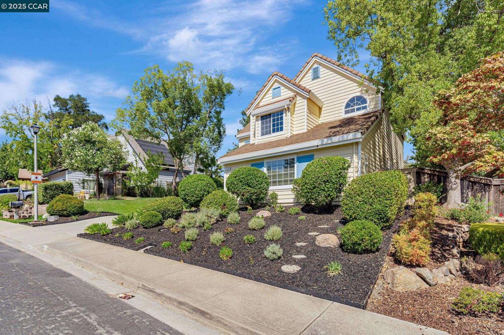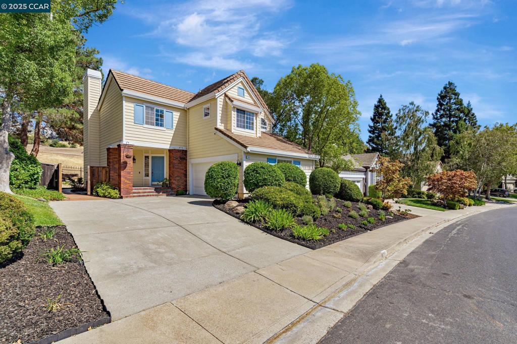 Welcome to 1816 Eagle Peak Avenue, a stunning contemporary residence nestled in the charming city of Clayton, CA. This move-in ready home offers 1,877 square feet of well-designed living space. Step inside to discover the grandeur of cathedral ceilings and elegant panel windows that fill the interiors with natural light. The home features three spacious bedrooms and two and a half bathrooms, with all interior walls, woodwork, and cabinetry freshly painted, complemented by new carpeting throughout.The living room, equipped with built-ins, offers a cozy setting with a marble fireplace, perfect for quiet evenings. The kitchen boasts granite countertops and newer appliances, setting a modern tone for culinary adventures. Enjoy the comfort of new central AC and a new furnace. The attached garage adds convenience, while the fully landscaped front and backyard, equipped with a new automatic drip watering system, ensure ease of maintenance.The property, set against the backdrop of a golf course, offers a private backyard oasis complete with a relaxing water feature, flower beds and raised garden beds. This home is the perfect blend of elegance and practicality, inviting you to experience refined living. A perfect sanctuary to call your own!