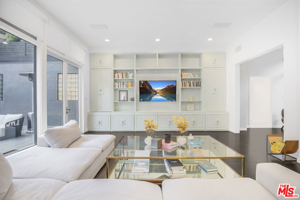 Stylish bungalow inspired home on an exceptional double lot in the heart of Beverly Hills, framed by lush, serene landscaping. This contemporary estate offers a private courtyard entrance ideal for gatherings, flowing into a welcoming foyer and striking floor to ceiling glass living room. A light filled atrium office and expansive grassy grounds complete the main living spaces. The primary retreat is thoughtfully designed with a fireplace, generous walk in closets, and a spa like bathroom featuring a soaking tub, glass shower, and sauna, with direct access to the outdoor lounge. The adjacent guest bedroom provides ample closet space and a full bath with glass shower and tub. The renovated kitchen is flooded with natural light and opens to a cozy dining area and third bedroom with en-suite bath. Outside, discover a sprawling backyard oasis perfect for entertaining, relaxing, or play, highlighted by a dramatic triple waterfall pool and spa, plus a separate hillside rear entrance with additional street parking. Ideally situated near Sunset Boulevard shopping and dining, and just minutes from the hiking trails at Franklin Canyon Park.