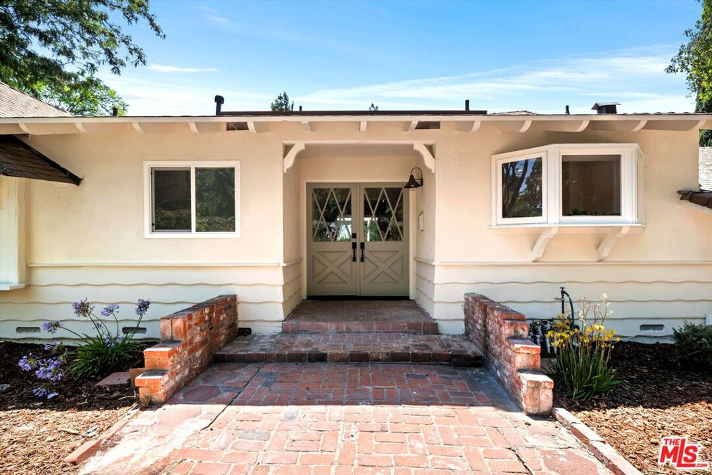 Beautifully remodeled ranch-style pool home on a picturesque corner lot in desirable Porter Ranch. This single-level residence blends timeless curb appeal with fresh, modern updates and an effortless indoor/outdoor flow. Inside, an airy great room showcases dramatic dark tongue-and-groove beamed ceilings, refinished wood flooring, and a whitewashed stone fireplace that anchors the space with character. Wide sliding glass doors usher in natural light and open directly to the backyard retreat. The dining area connects seamlessly to a showpiece, all-new chefs’ kitchen crafted with sleek shaker cabinetry, richly hued quartz countertops, hand-set zellige-style backsplash, warm brass pendant lighting, a spacious island with seating and stainless appliances. The serene primary suite enjoys leafy views and a beautifully renovated en-suite bath featuring a double wood vanity, quartz counters, stylish sconces, and a large glass-enclosed shower lined with artisan tile. Two additional bedrooms are bright and generous, with ample closet space. Chic hallway bath echoes the home’s curated palette with a long double vanity, matte black fixtures, and designer tile. Backyard features a sun-drenched sparkling pool, expansive patio for lounging and dining beneath an elegant white pergola, raised brick planters, mature landscaping, and tall hedges for exceptional privacy. All set on an expansive 11,000+ sq ft corner lot with multiple zones for play, gardening, and gatherings. A side decked gazebo adds another shaded nook, and the attached two-car garage plus driveway parking provide everyday convenience. Moments from parks, hiking trails, shopping, dining, this turnkey home delivers style, comfort, and charm in a prime location. THIS IS A MUST SEE!