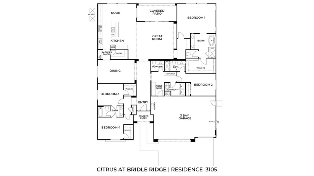 Here you will find a beautiful collection of well-appointed single-family homes offering convenience and value in spacious single-story floor plans designed with efficient, yet comfortable space planning in mind. This floor plan features 3,105 square feet with up to 4 bedrooms, 3.5 bathrooms, 3-car garage, and a covered patio. Indulge in everyday luxury in the expansive primary bathroom, where double sinks offer convenience and style, and a bathtub invites you to unwind in total comfort. Among the features and finishes, homeowners will appreciate the unparalleled peace of mind of owning America’s Smarthome—a whole-home network of Wi-Fi enabled smart home devices by brands you trust, all conveniently controlled from your smartphone or the sleek touch screen panel mounted near the entry of each new home.